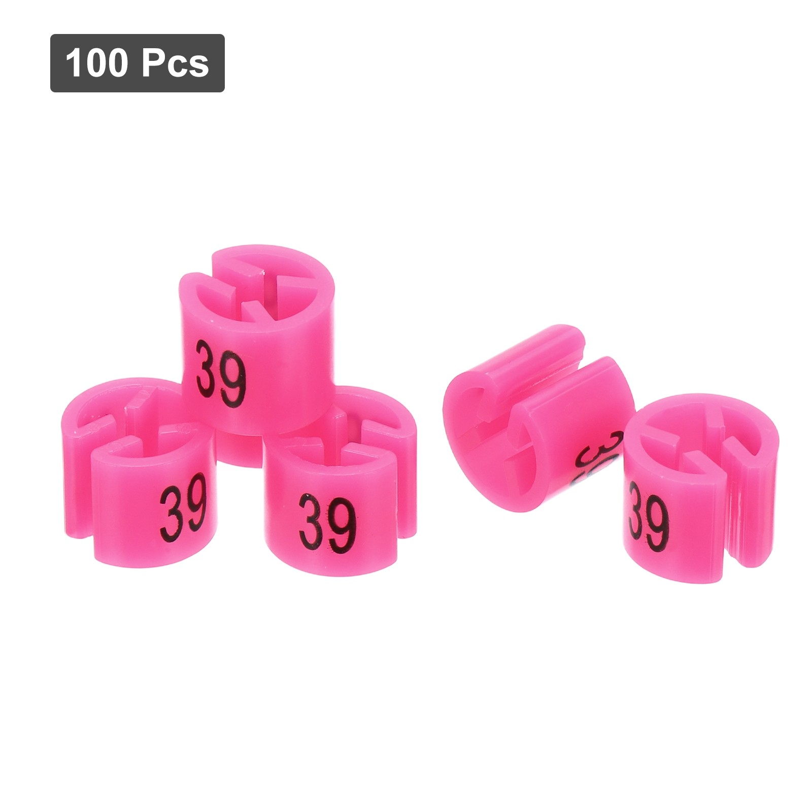 100 Pack Clothes Hanger Marker Number 39 Size Tag Fit 3mm Rod Rose Red