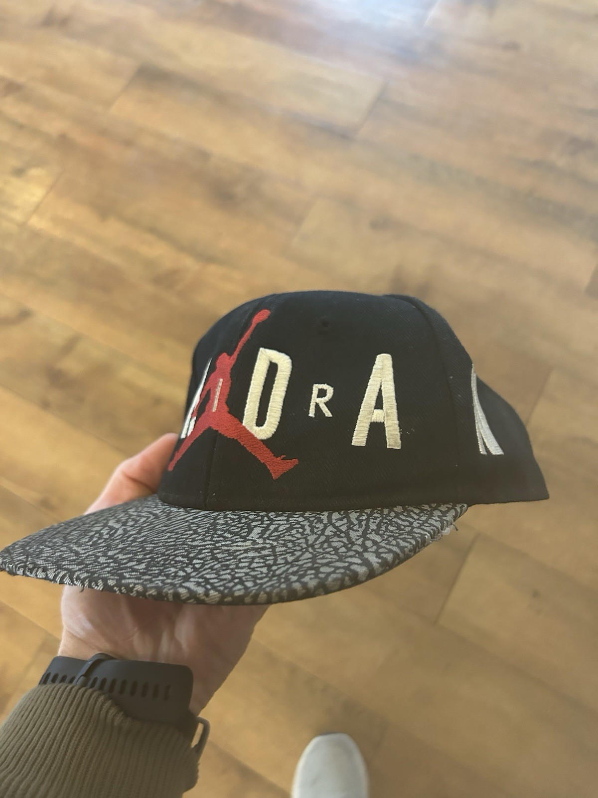 как выглядит Nike Air Jordan Jumpman Hat Youth Snapback Black Cement фото