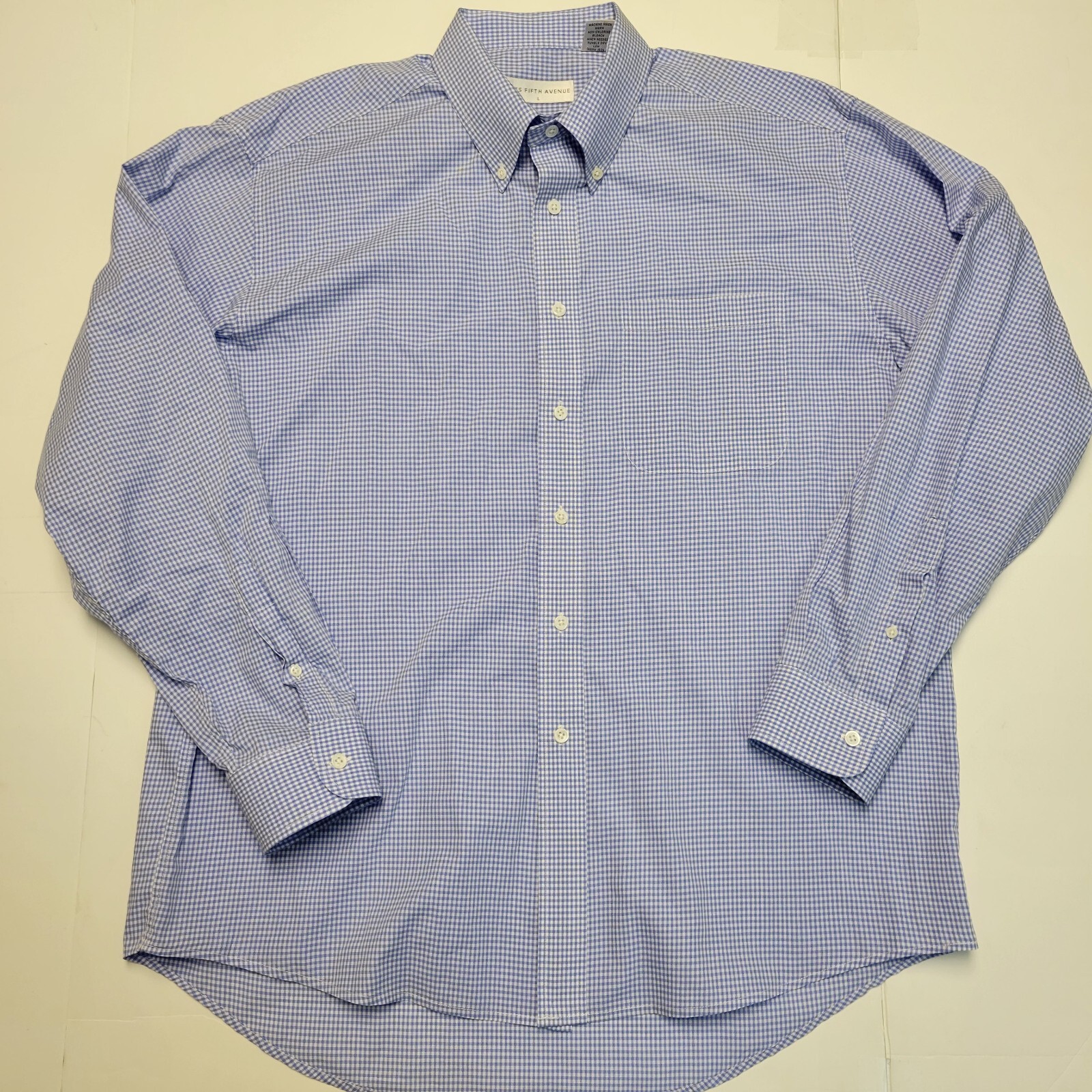 vtg 90s SAKS FIFTH AVENUE Button Front Dress Shirt Men LARGE L Blue Check COTTON