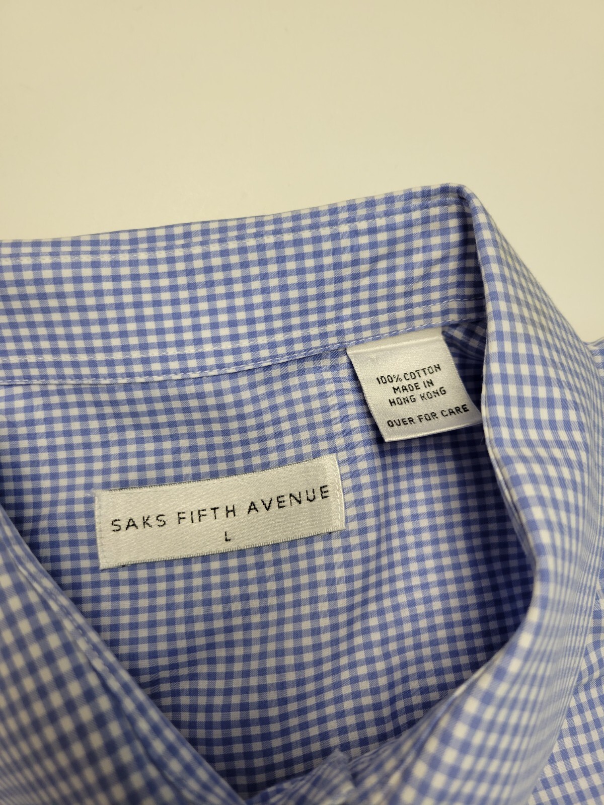 как выглядит vtg 90s SAKS FIFTH AVENUE Button Front Dress Shirt Men LARGE L Blue Check COTTON фото