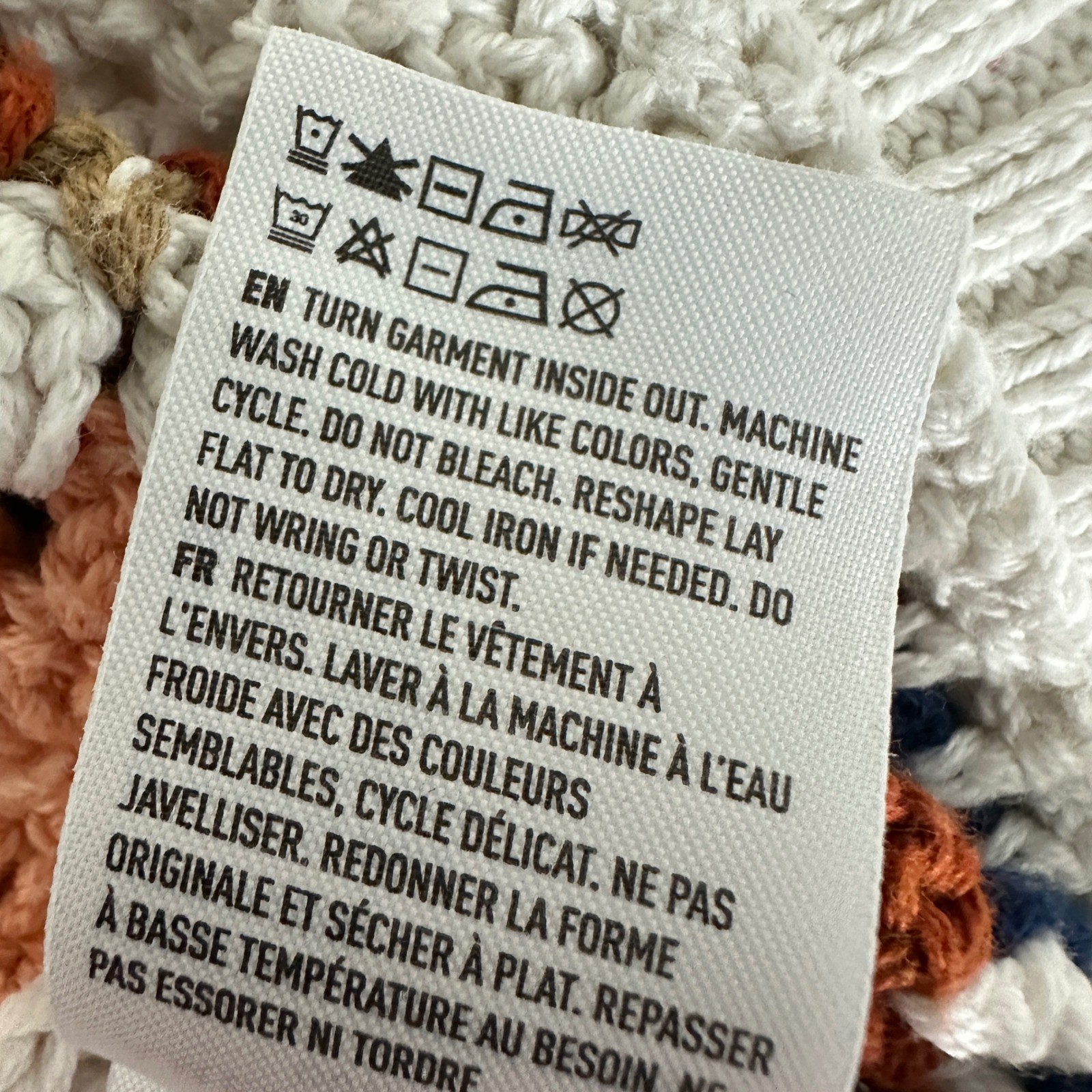 American Eagle Womens Sweater L Ivory Granny Square Crochet Knit Boho Hippie 70s