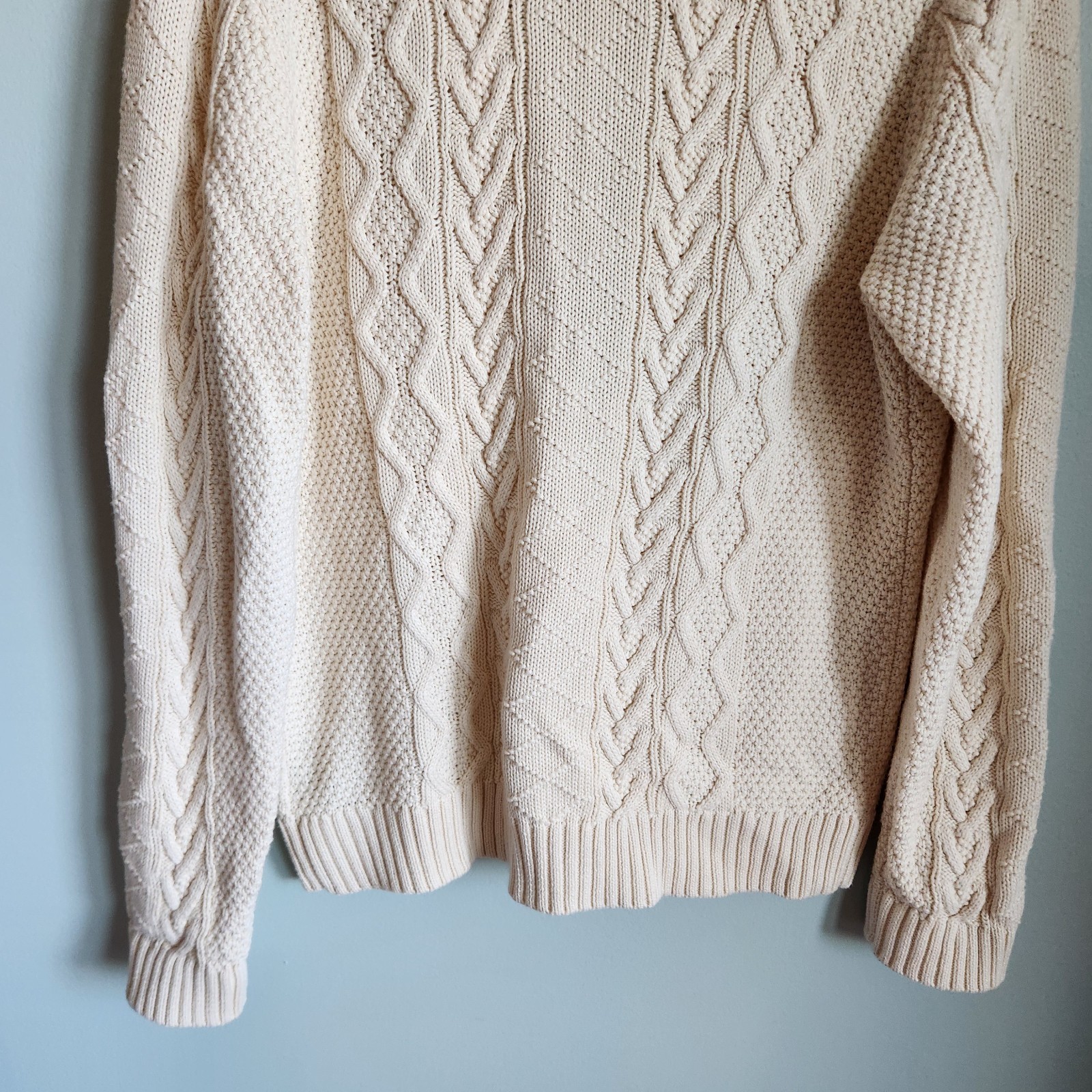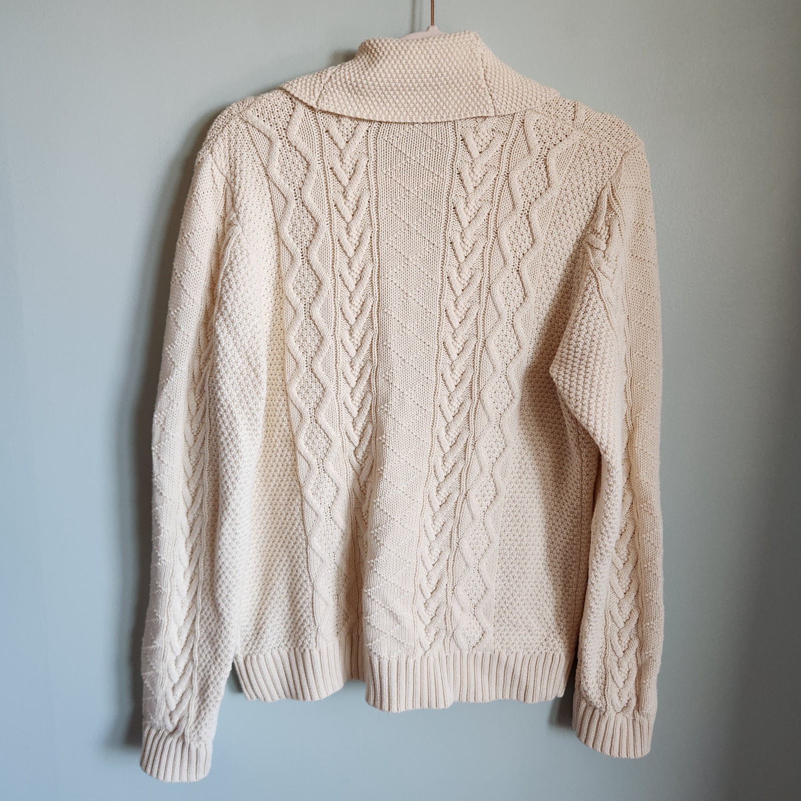 как выглядит Laure Ralph Lauren Sweater Beige XL Womens Equestrian Cable Knit Cardigan фото