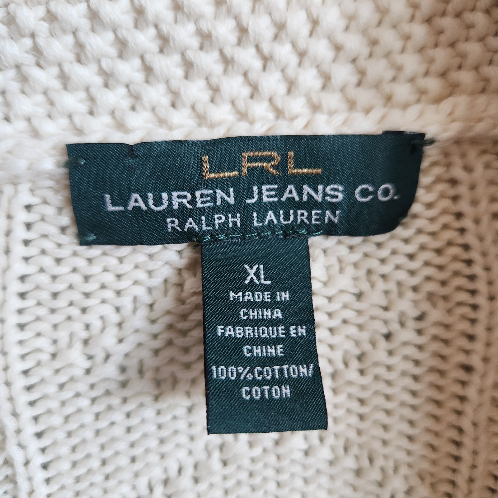 Laure Ralph Lauren Sweater Beige XL Womens Equestrian Cable Knit Cardigan