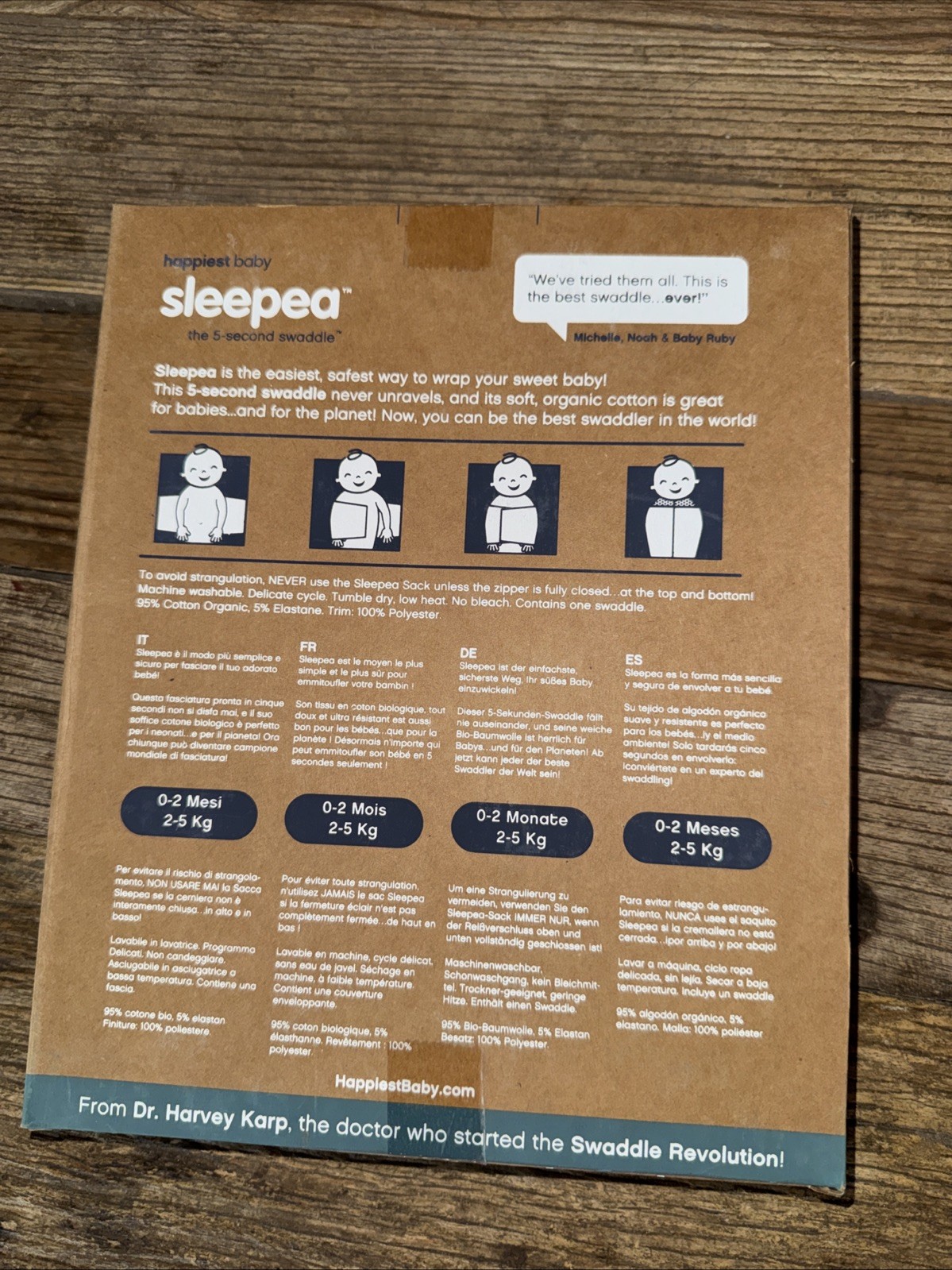 Happiest Baby sleepea, swaddle, organic cotton, Blue, sz S 0-2Months / 2-5kg