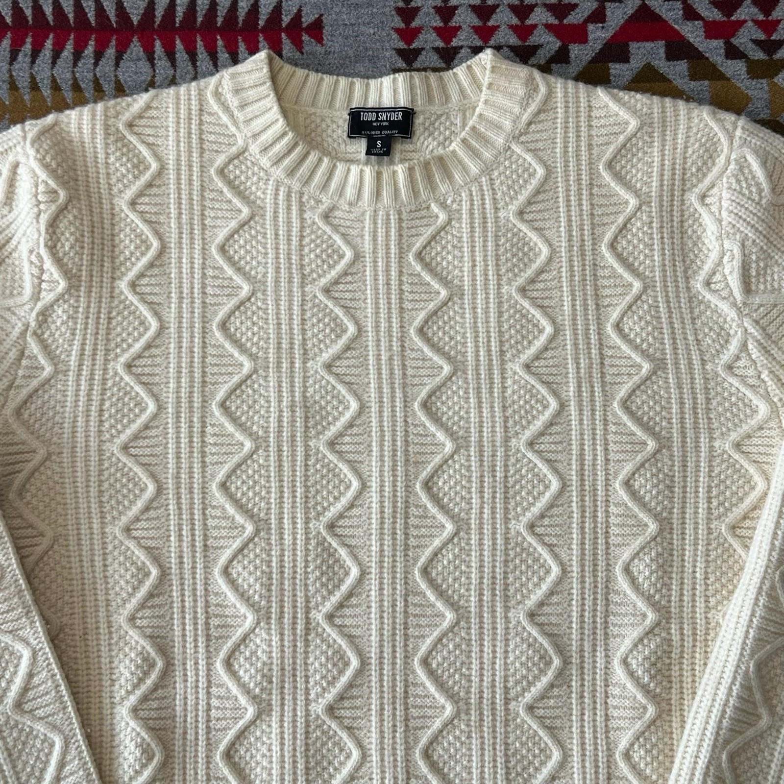 Todd Snyder Merino Wool Cableknit Fisherman Sweater Pullover Ivory Mens Small A9