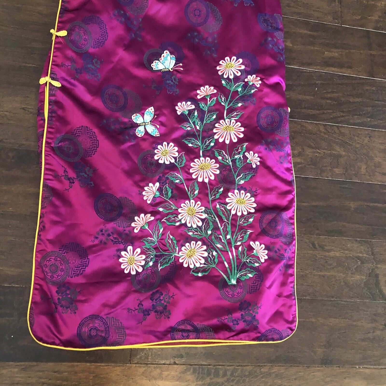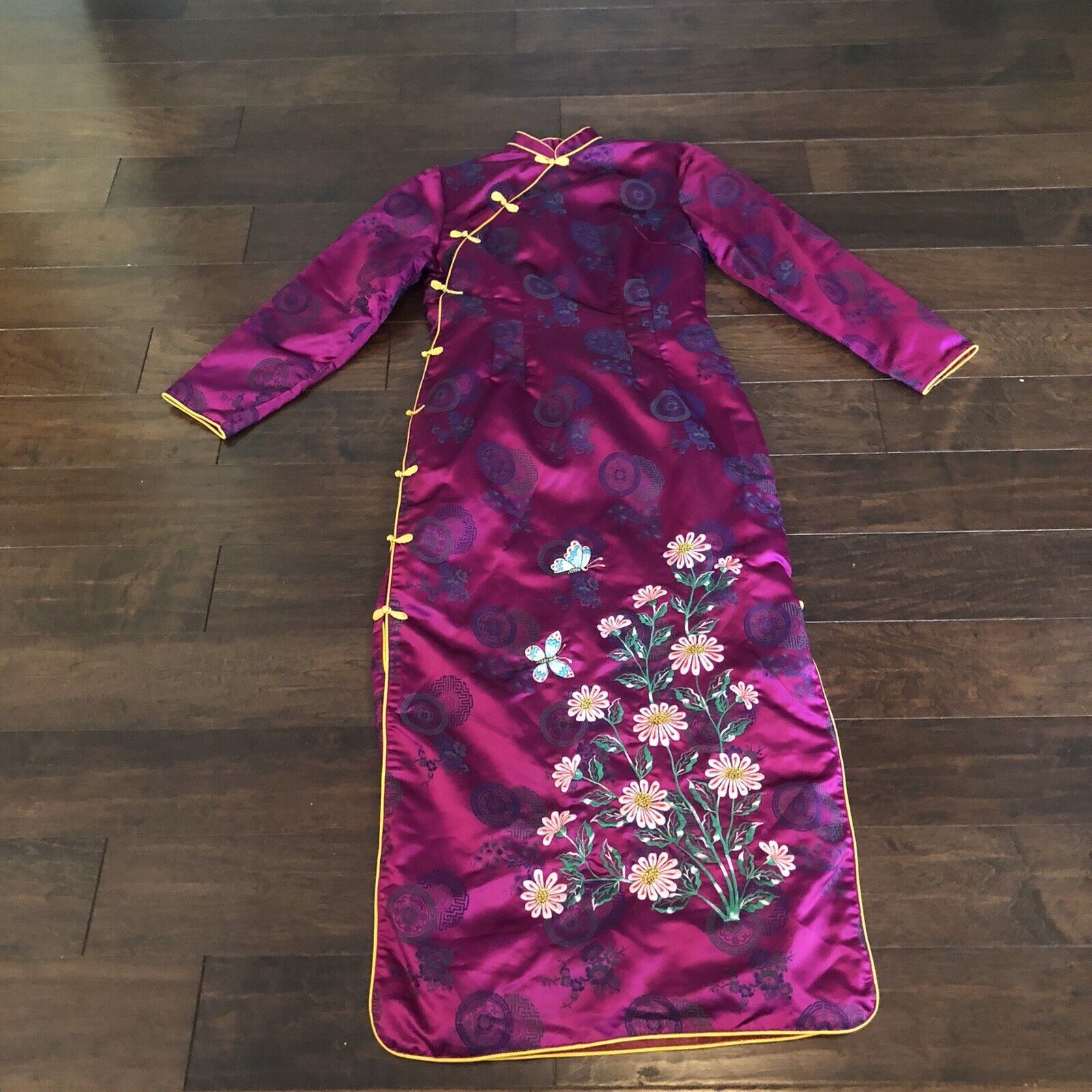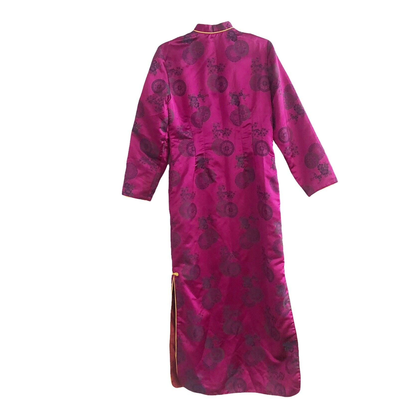как выглядит VINTAGE LADIES Purple SATIN ASIAN CHINESE Mandarin Collar Party Dress VTG фото
