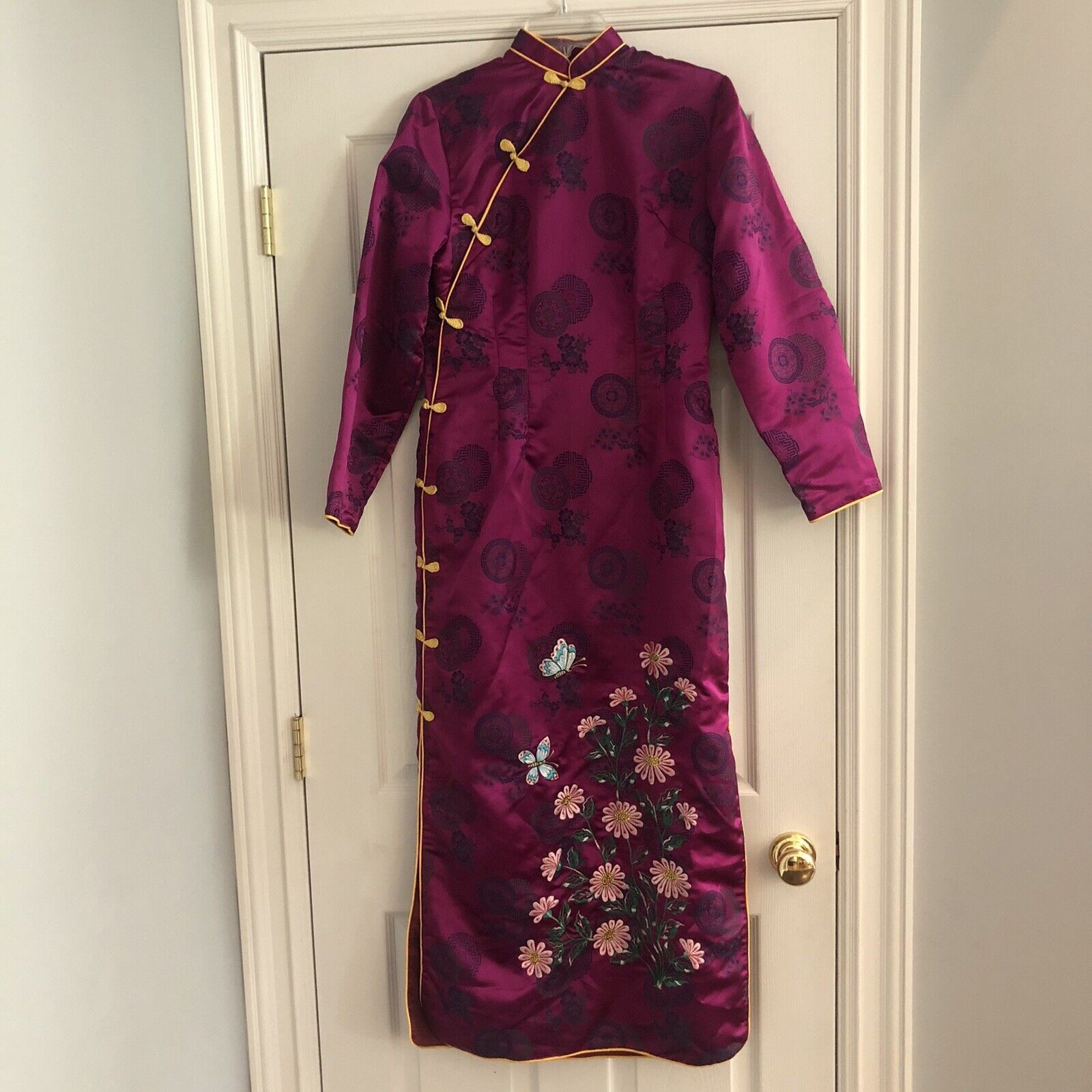 VINTAGE LADIES Purple SATIN ASIAN CHINESE Mandarin Collar Party Dress VTG