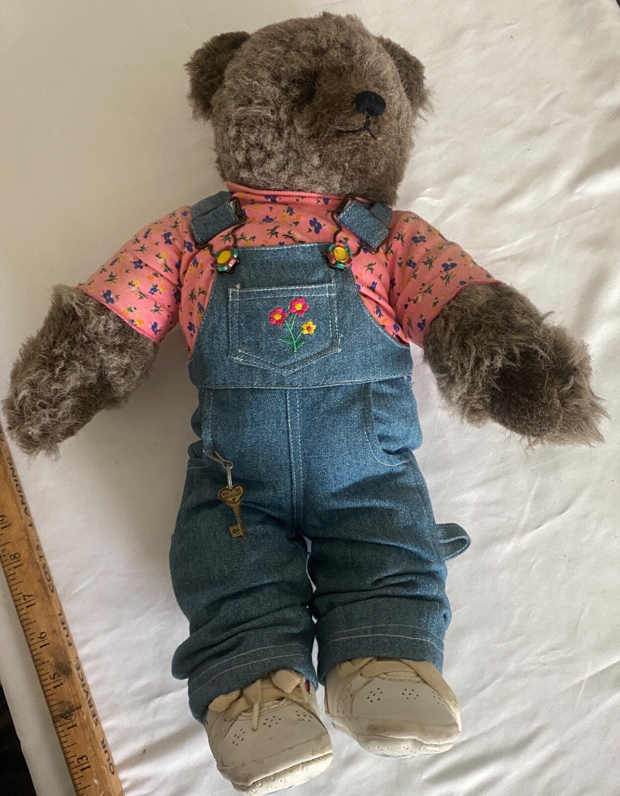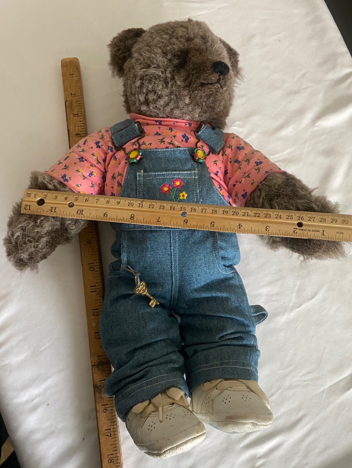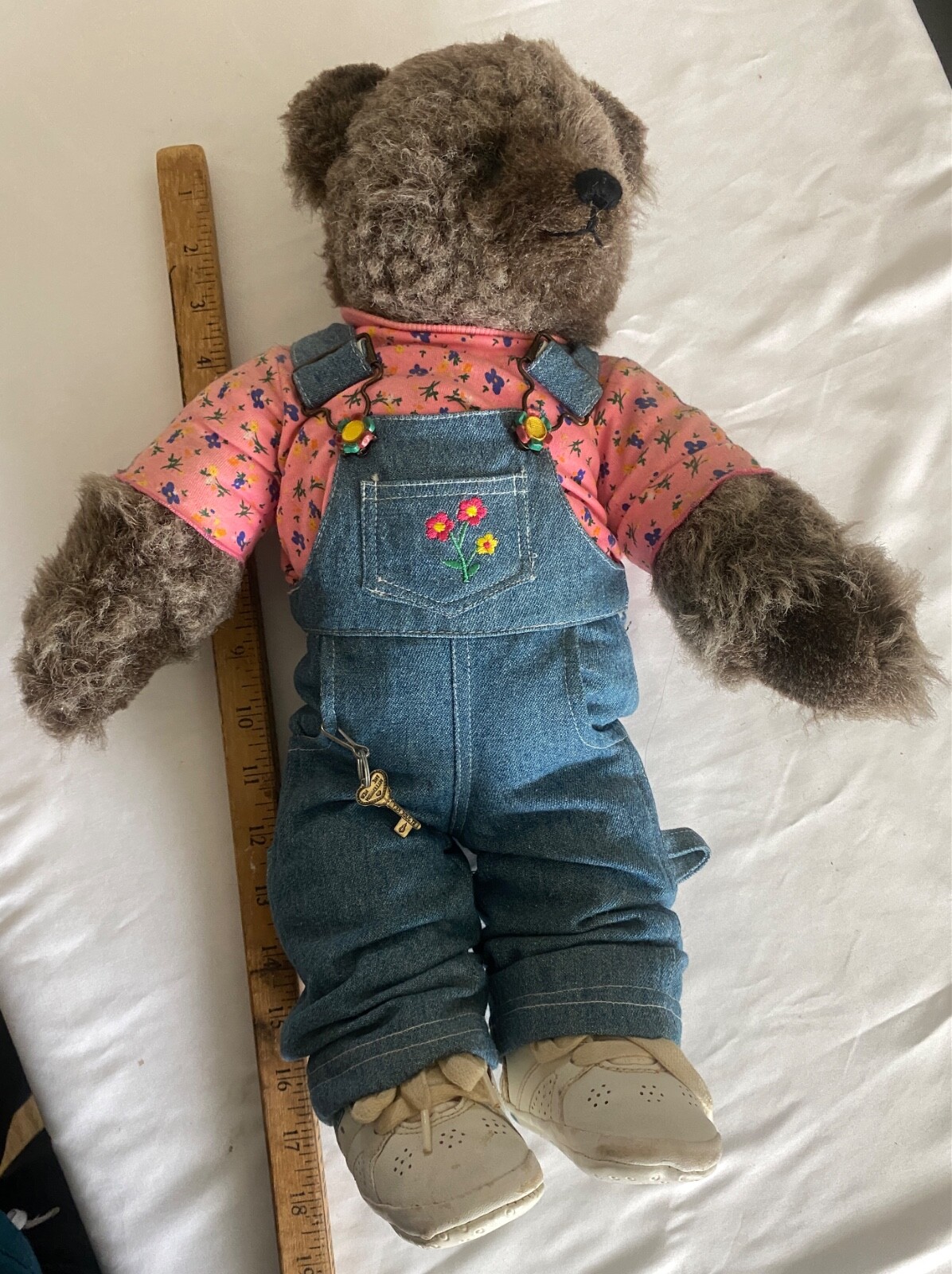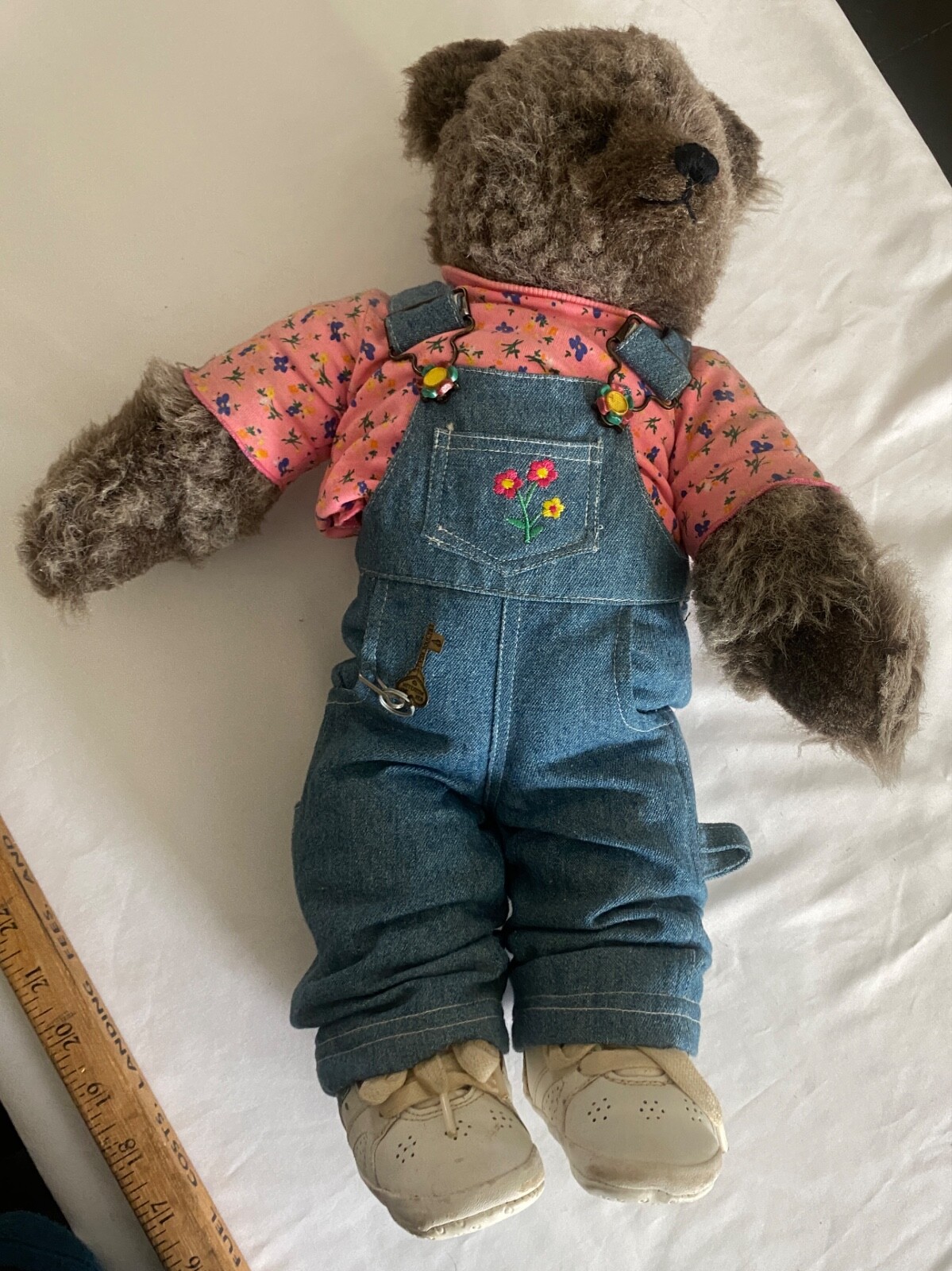 как выглядит VTG Teddy Bear OshKosh Bgosh Denim Flower Embroided Overalls WhiteSneaker 18 фото