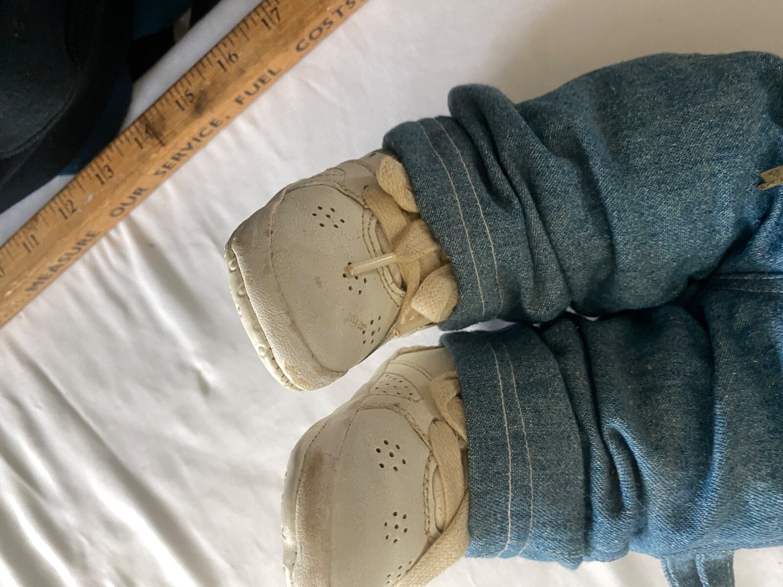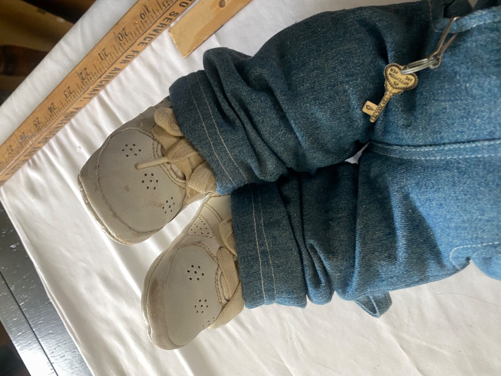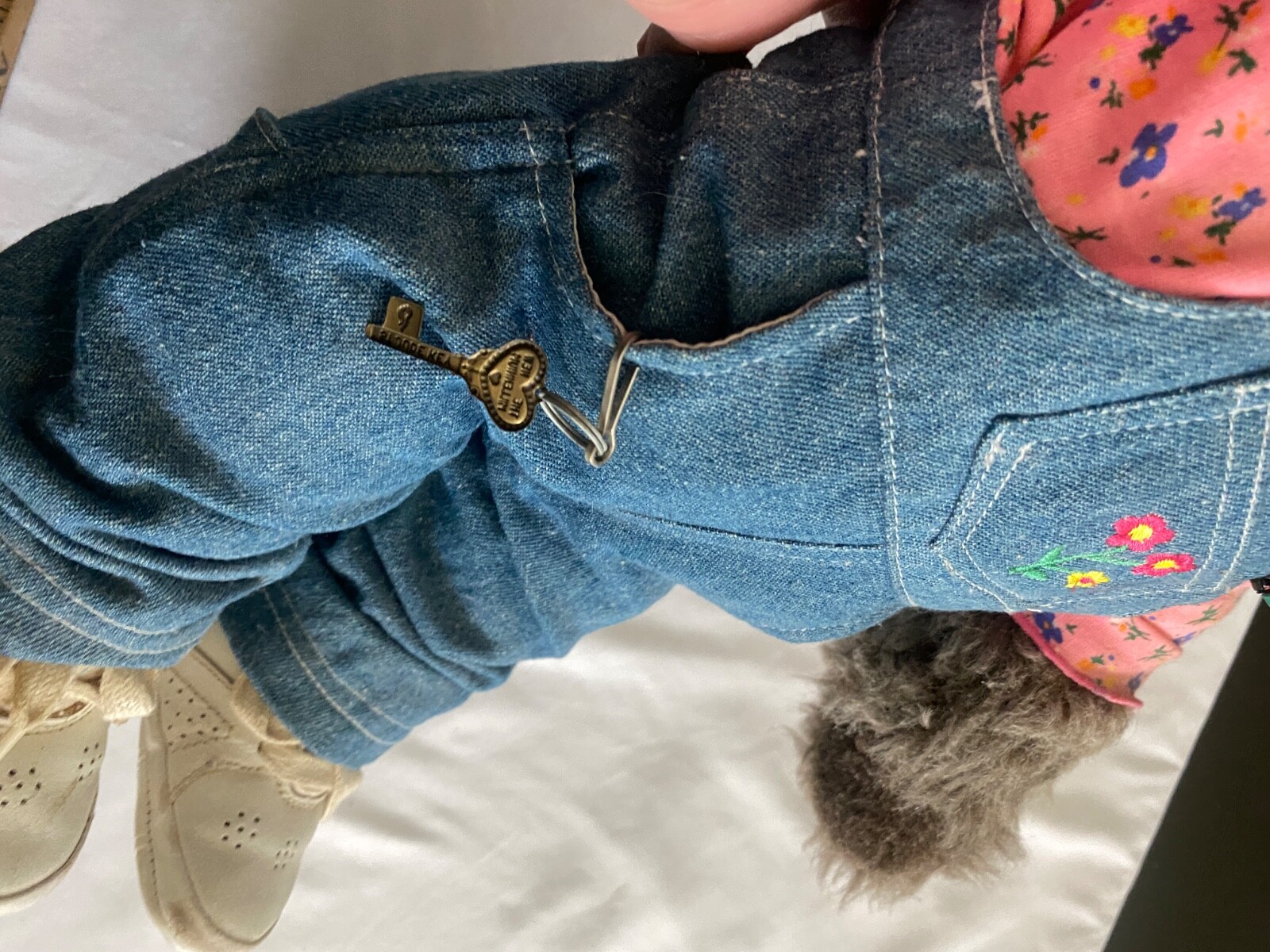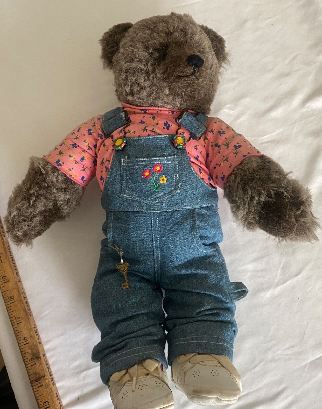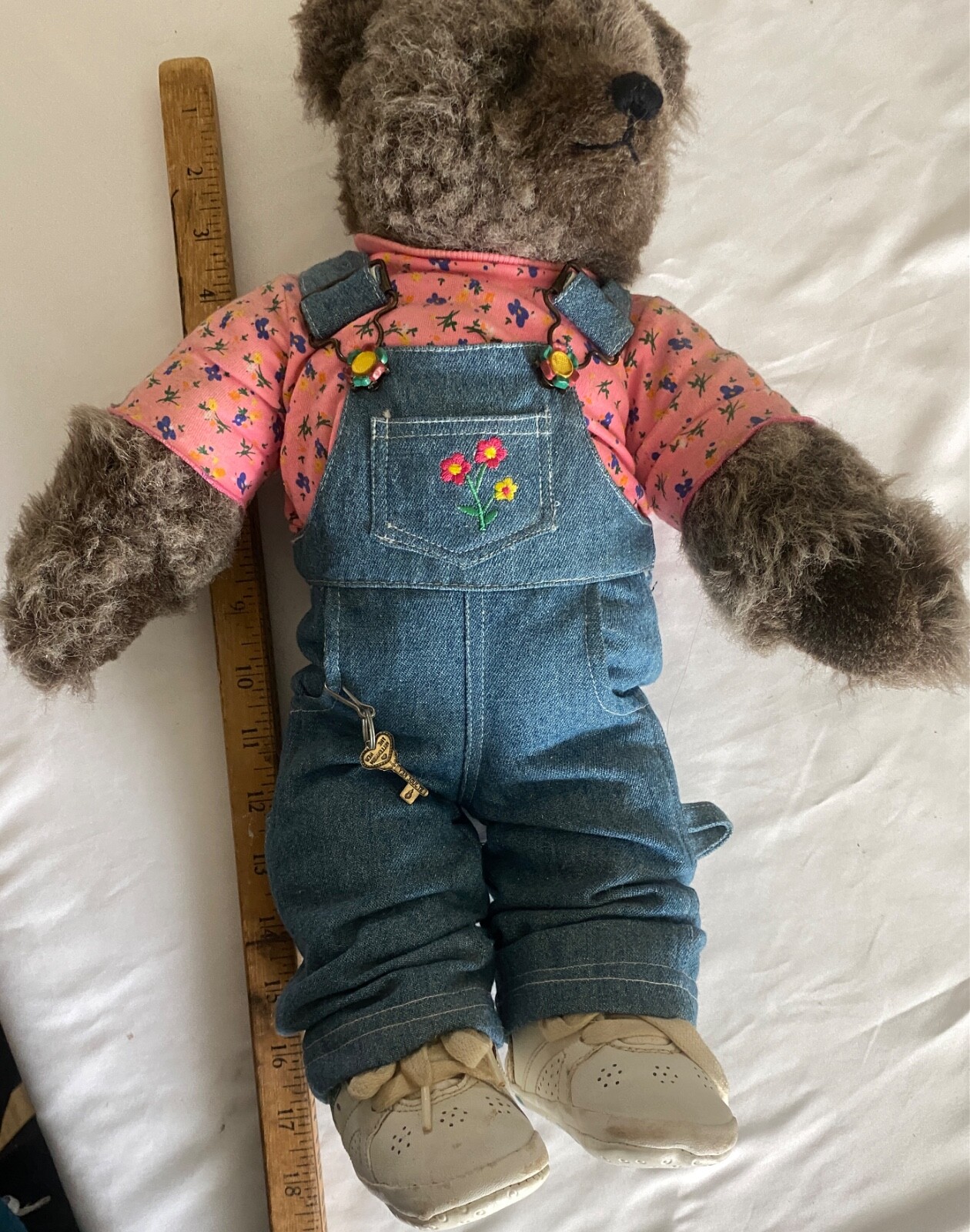 как выглядит VTG Teddy Bear OshKosh Bgosh Denim Flower Embroided Overalls WhiteSneaker 18 фото