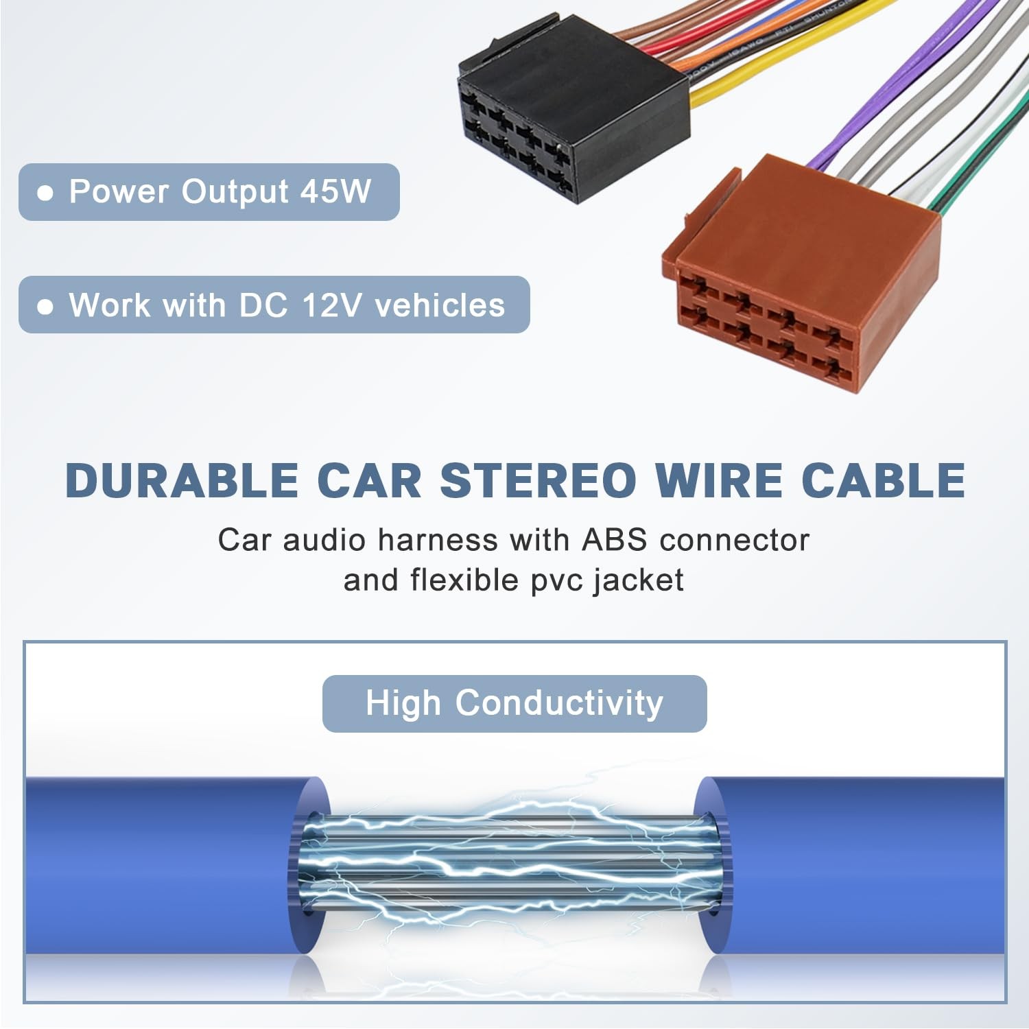 Universal ISO Car Radio Stereo Wiring Harness Adapter, Audio multi-color