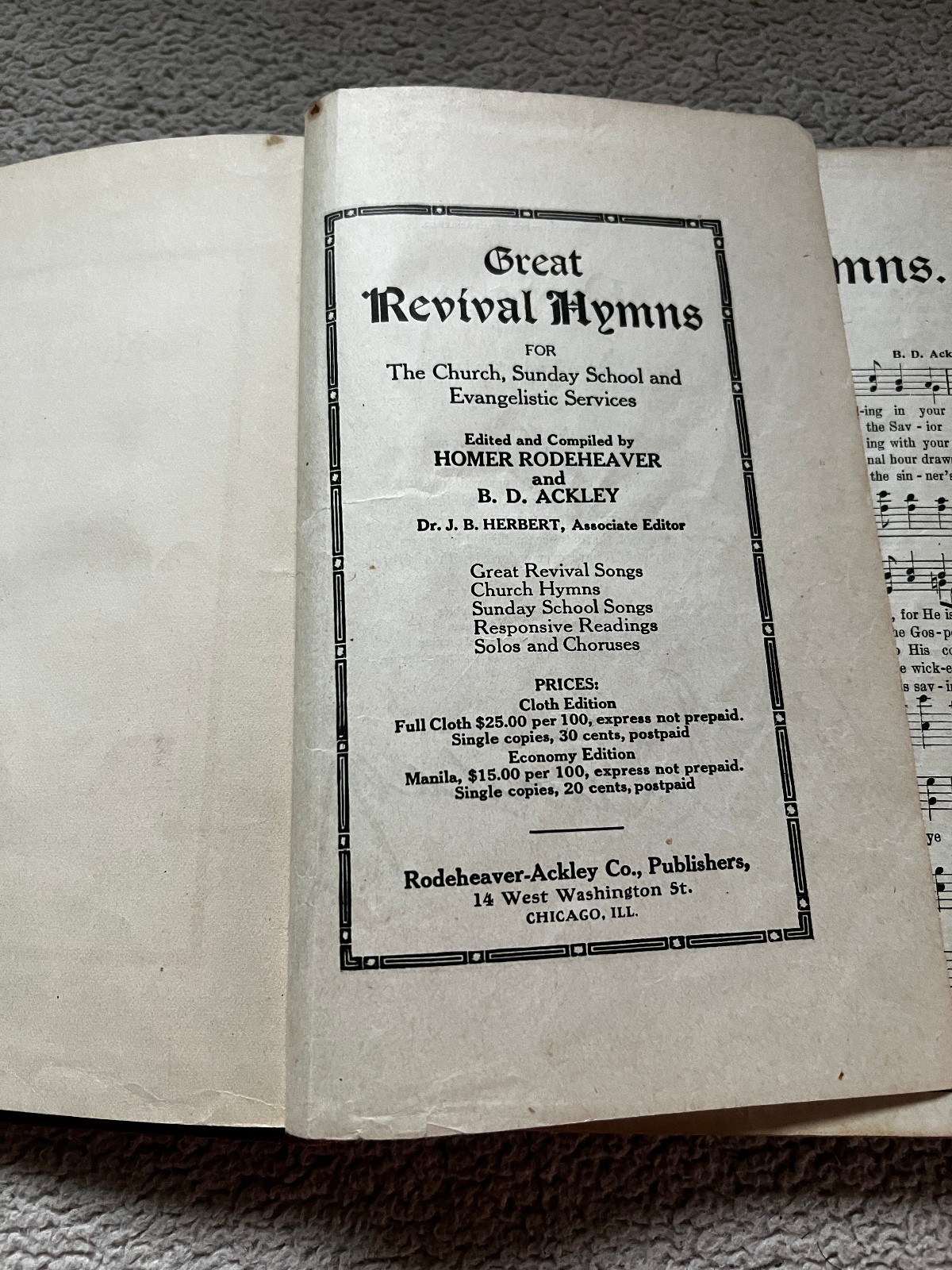 Vintage Great Revival Hymns Hardcover Song Book 1911 Antique Gospel Hymn Church
