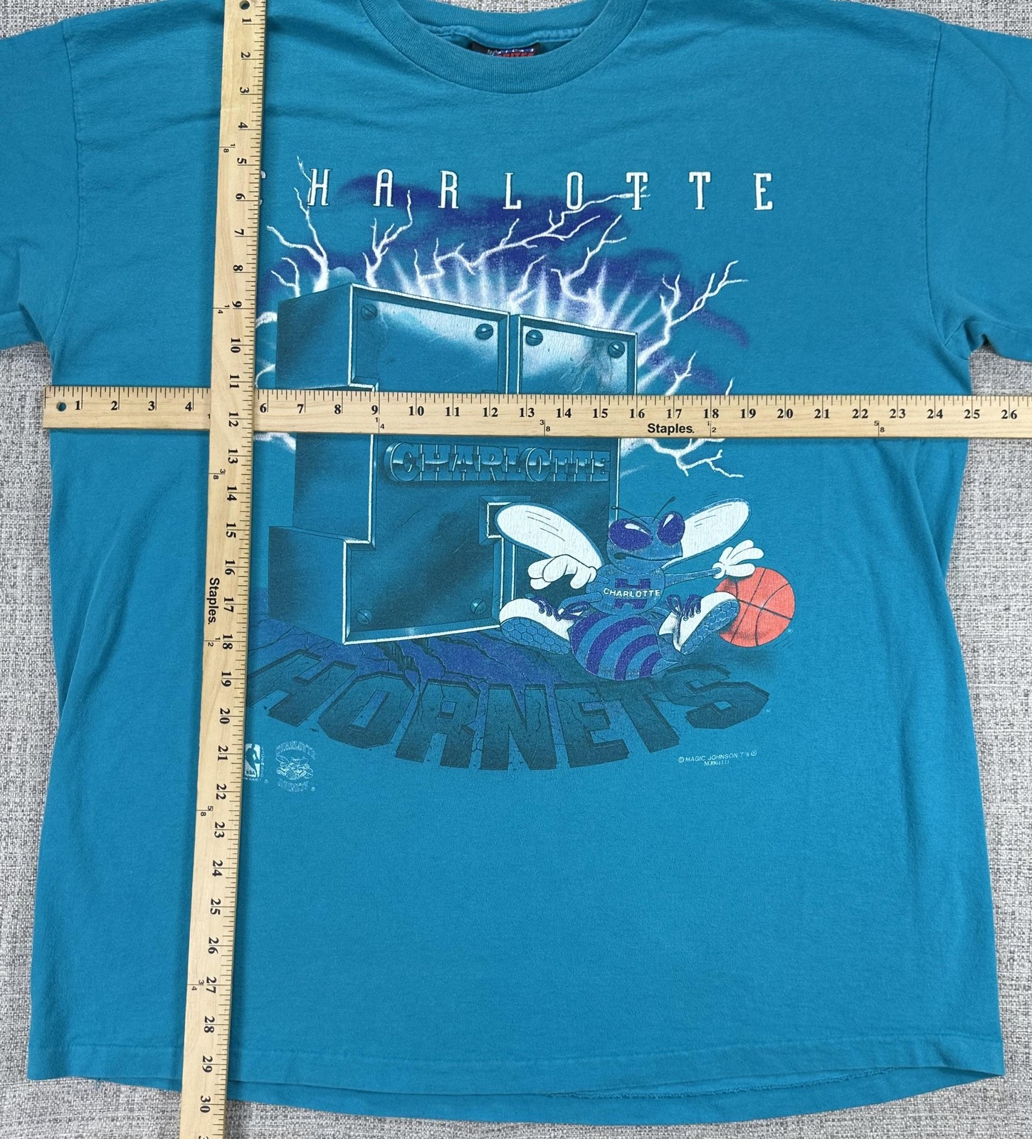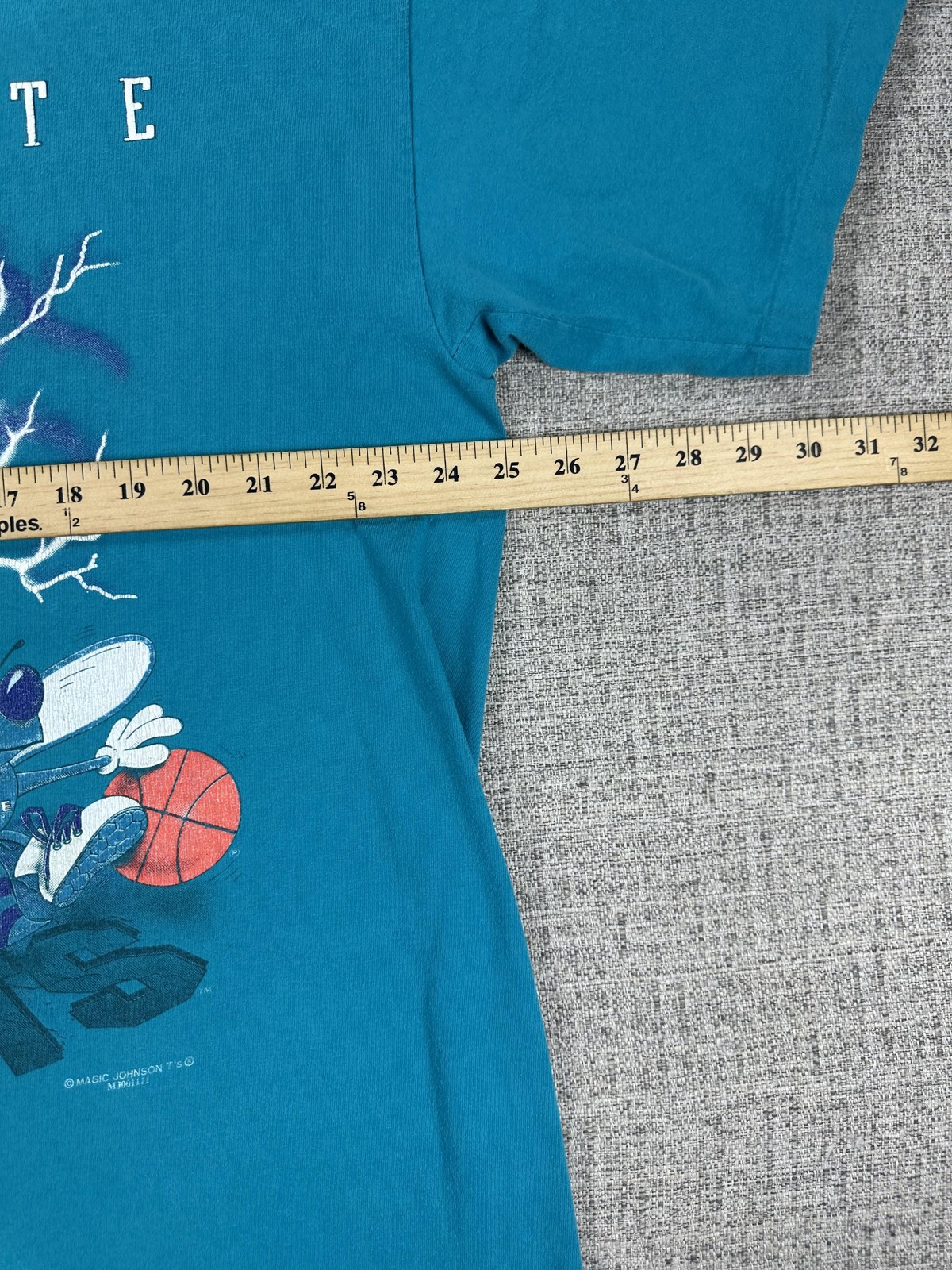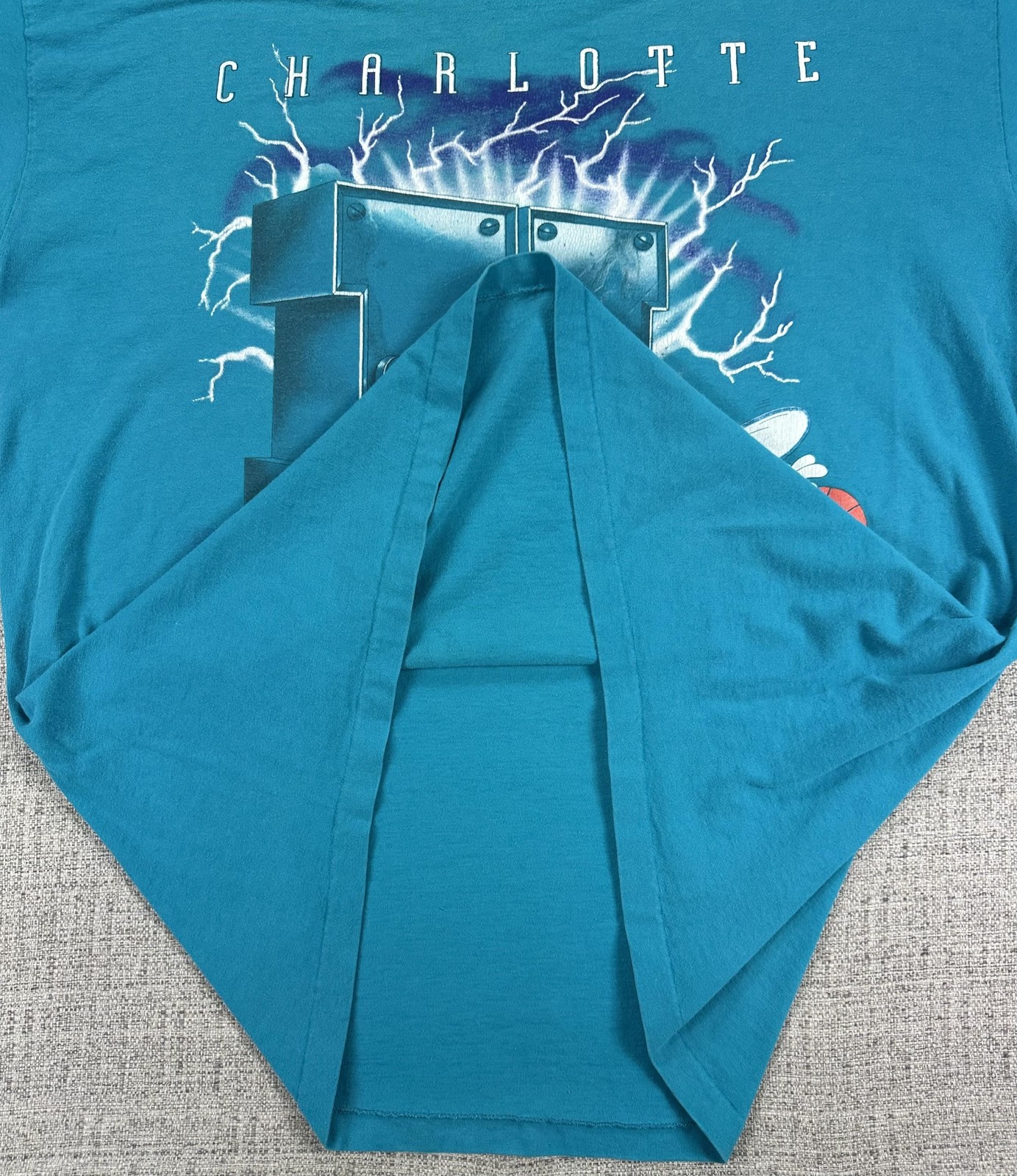 Vintage Charlotte Hornets Shirt Mens XL NBA Basketball Lightning Mascot USA 90s