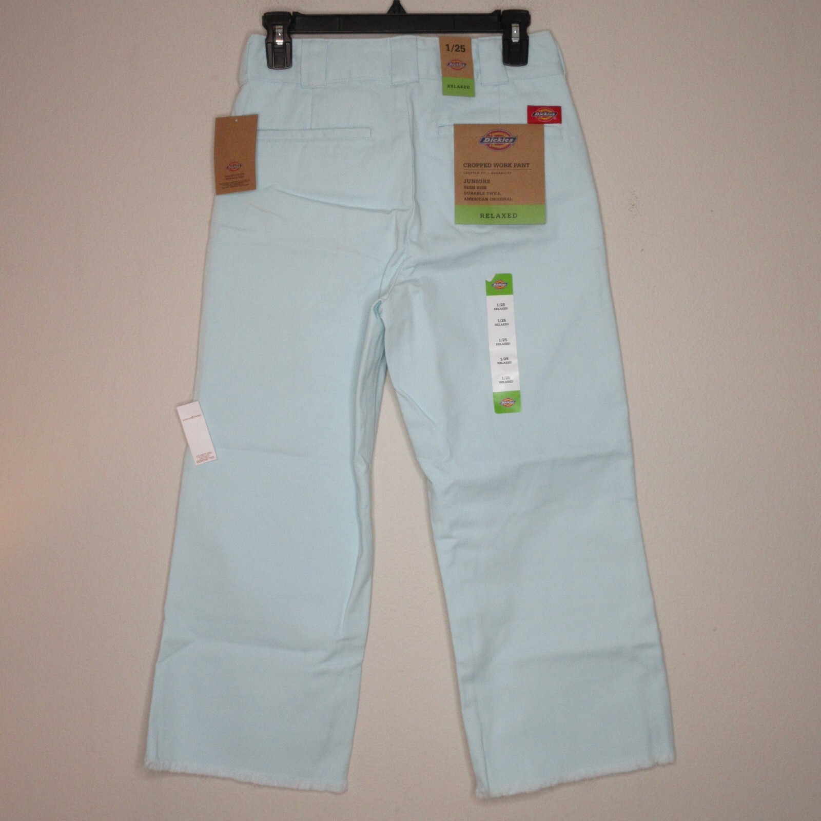 Dickies Junior's GirlsCropped Work Pants High Rise Relaxed Fit Sky Blue 1/25 B62