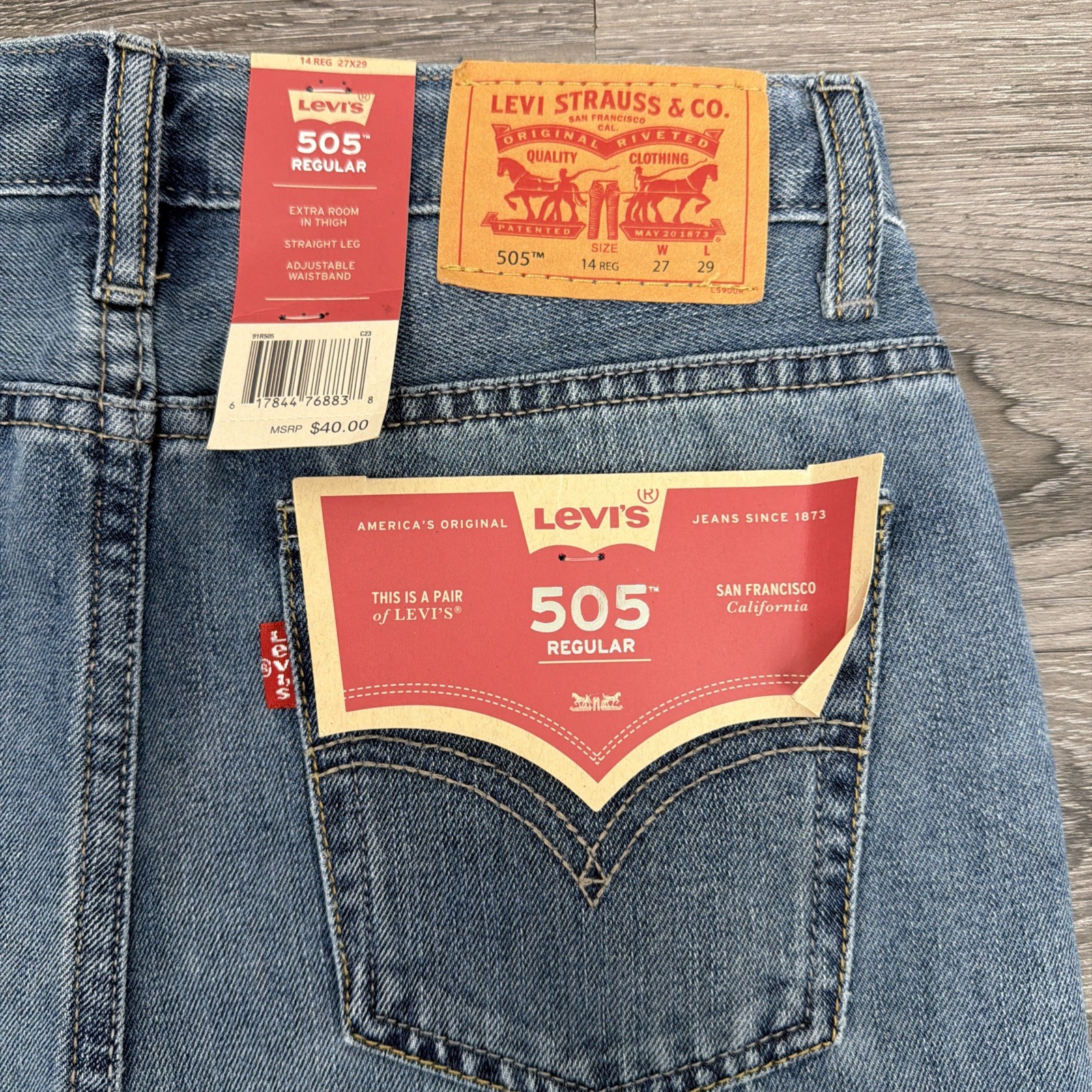Levi s 505 Regular Fit Jeans Youth Size 14 W27 L29 Blue Denim New With Tags