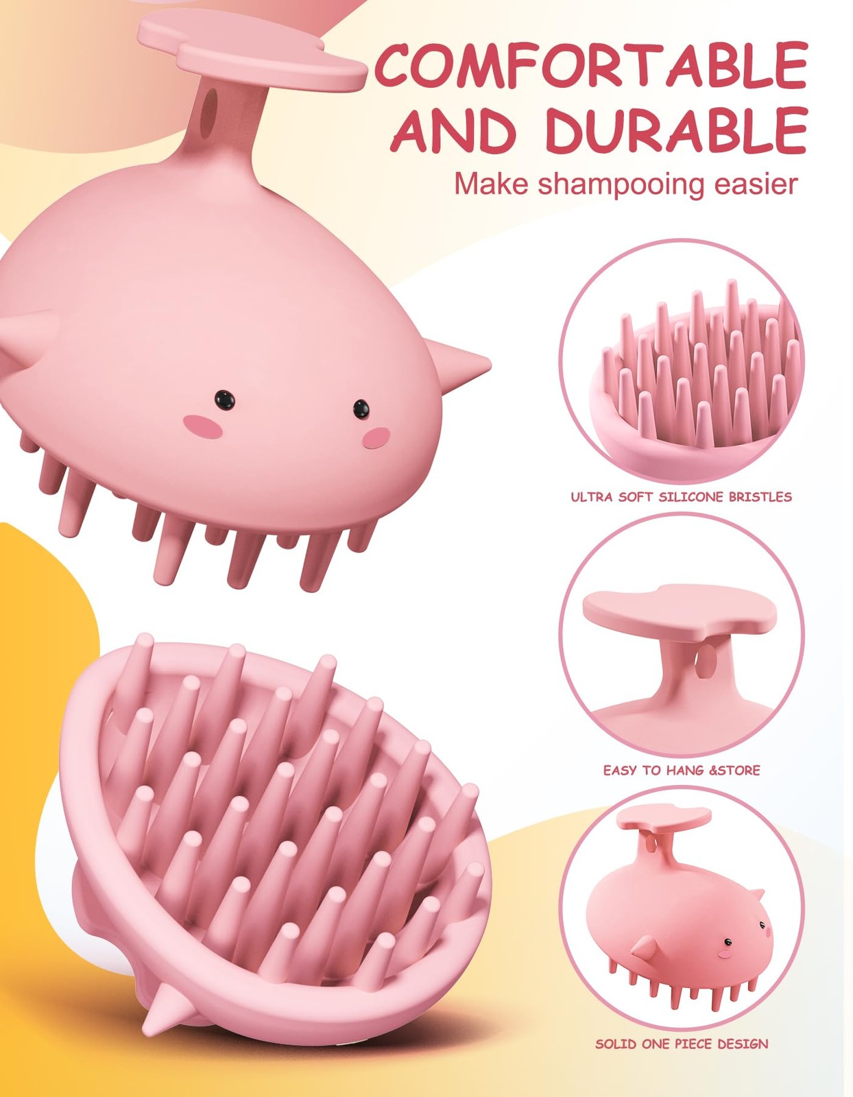 Scalp Massager Hair Growth Shampoo Brush, Silicone Scrubber Shower Pink