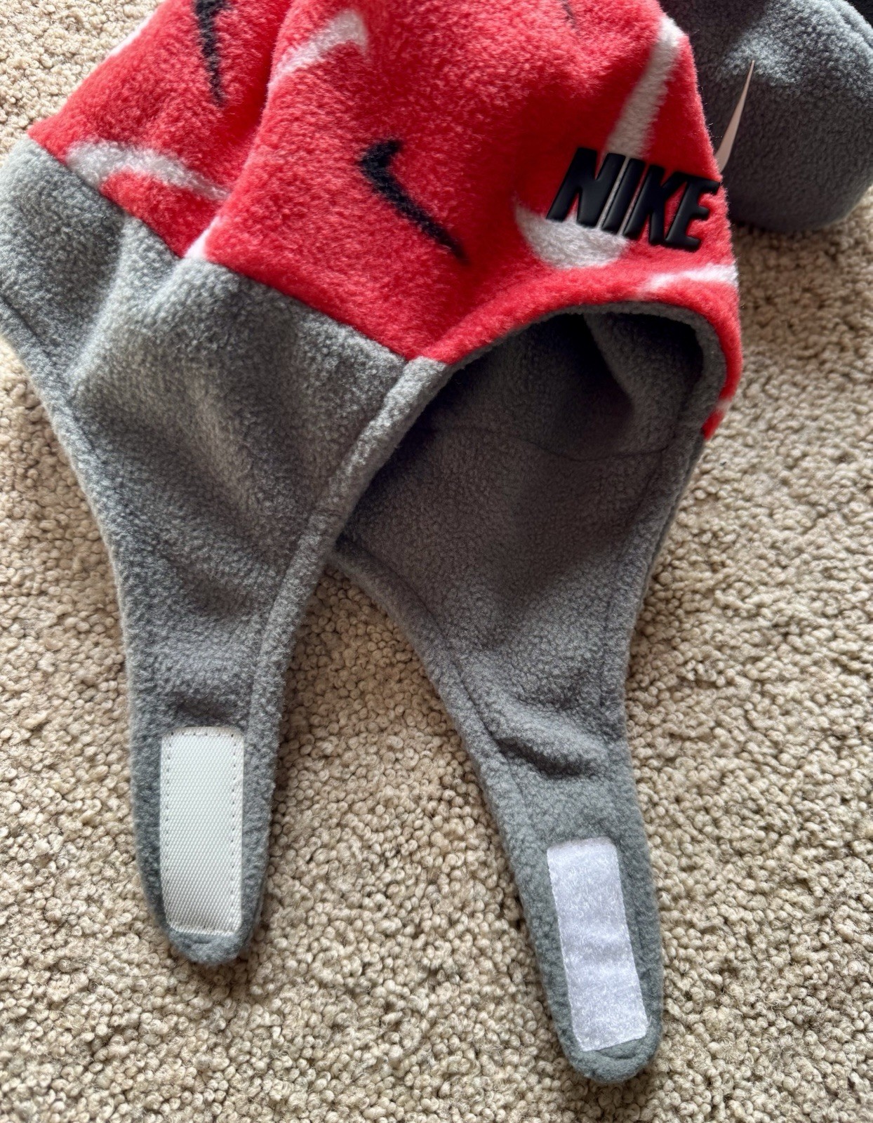 как выглядит Nike Infant Hat And Mittens Set 2 Piece Fleece Gray Red Logo фото