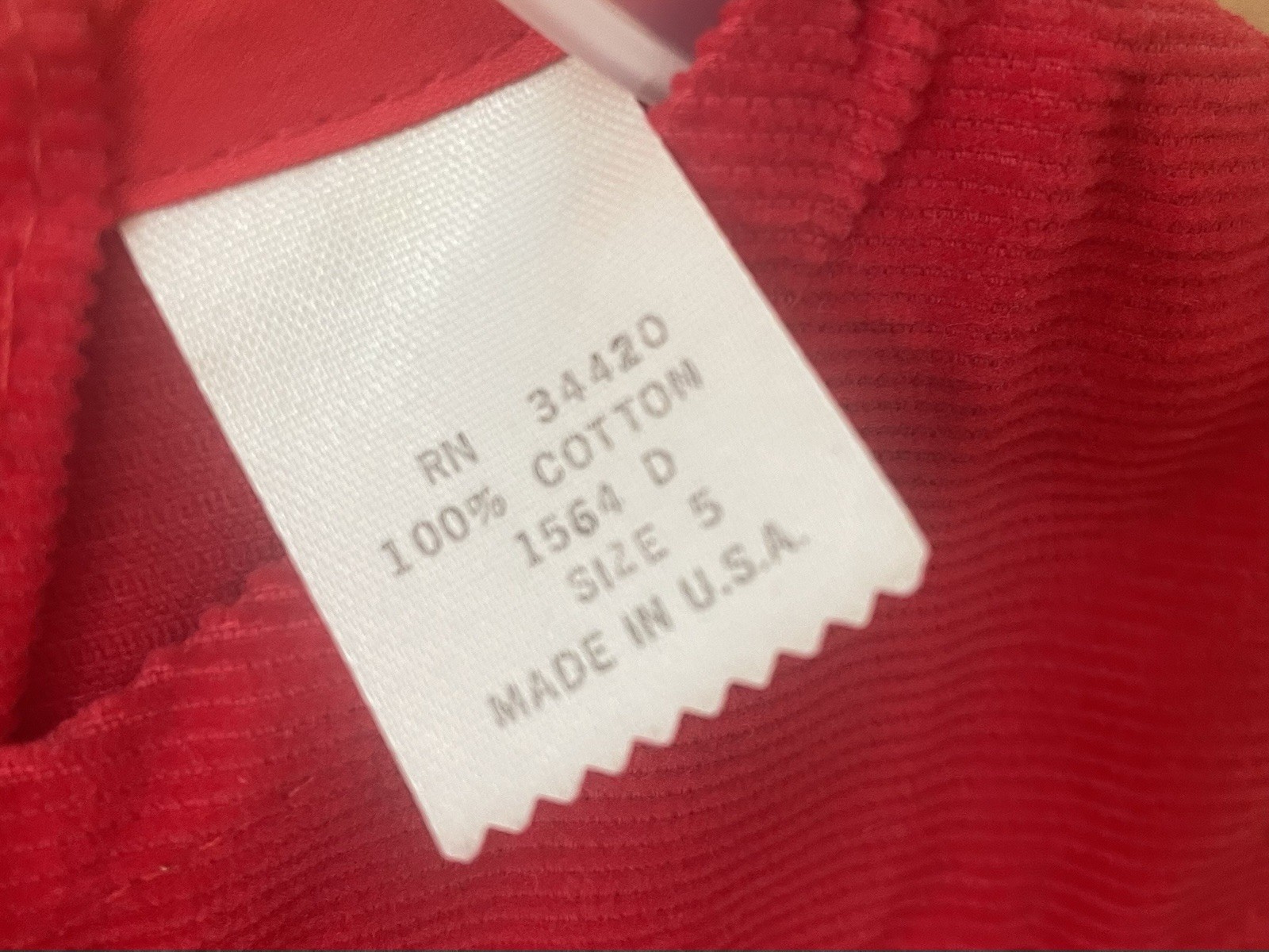 GIRL S VINTAGE RED SMOCKED CORDUROY SLEEVELESS JUMPER SIZE 5 MADE IN USA