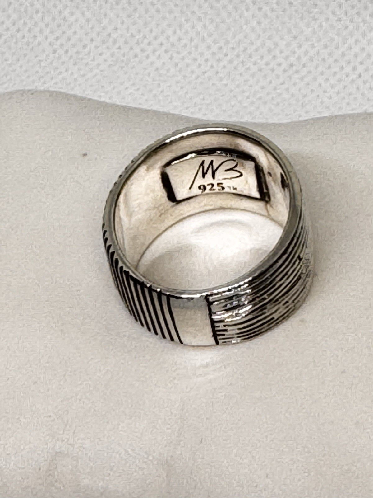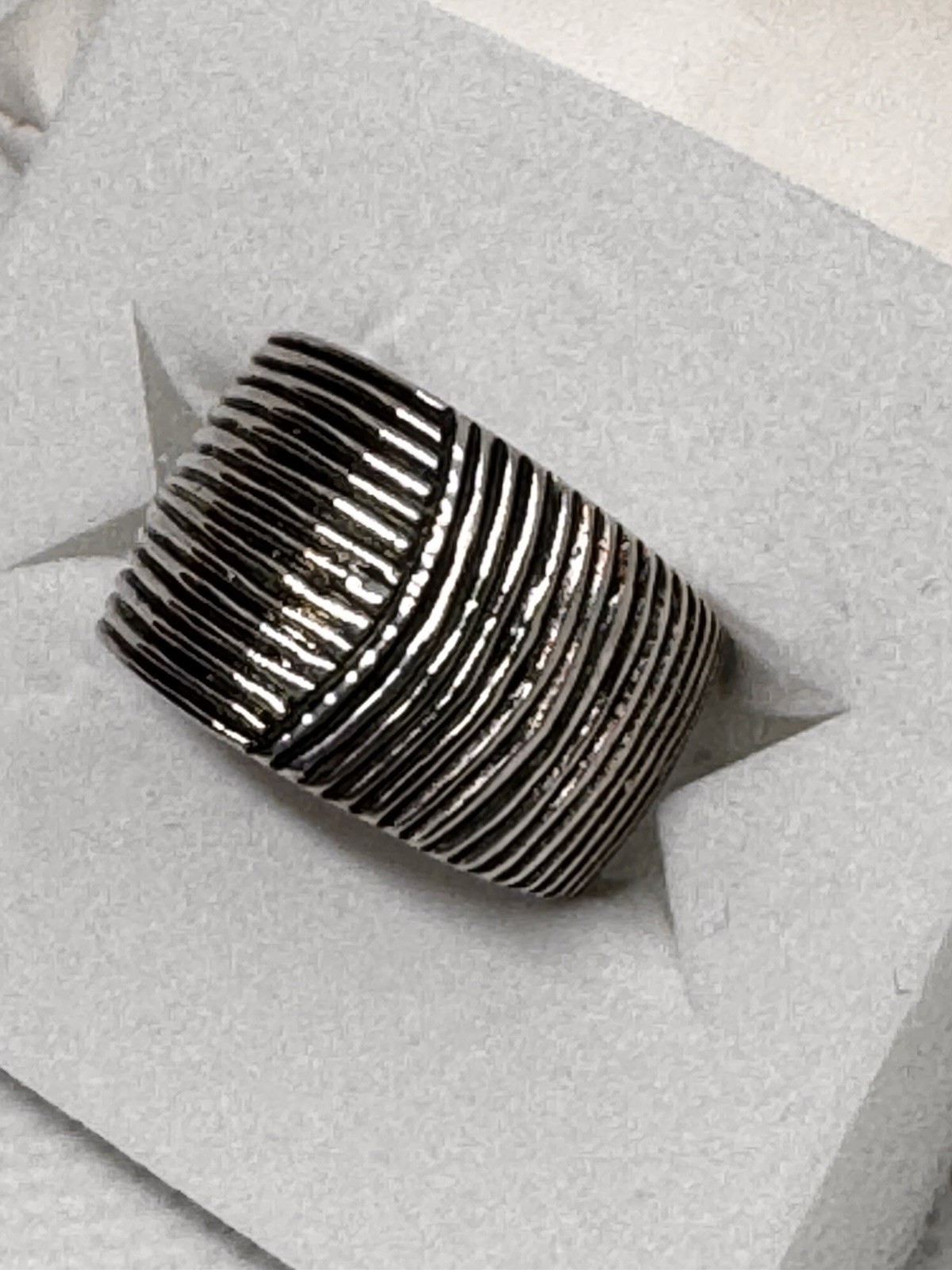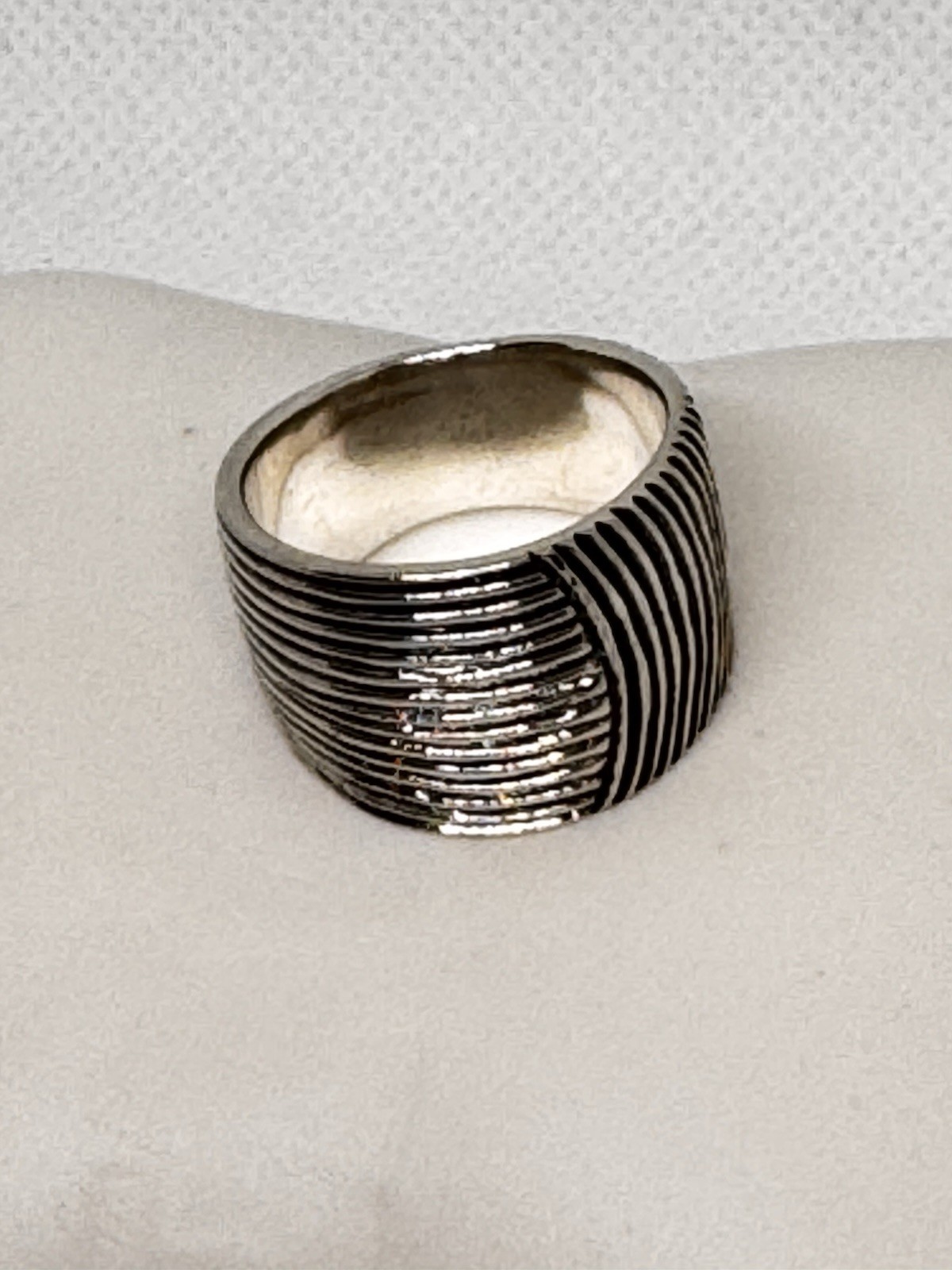 как выглядит 925 Sterling Silver Wide Ribbed Textured Band Ring Size 8.25 New фото