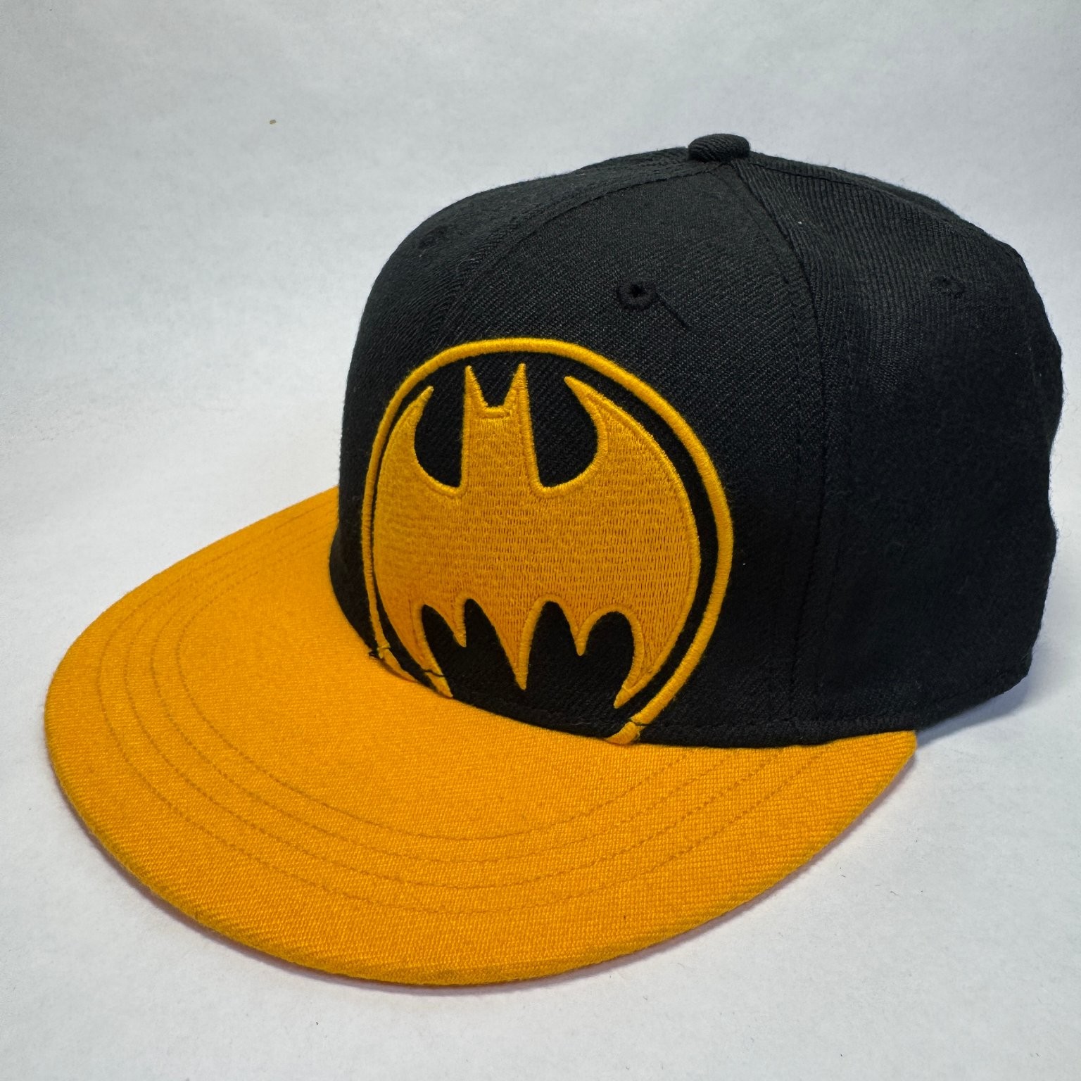Batman Hat DC Comics Men's S/M Fitted Black Yellow Flat Brim Bat Signal Logo