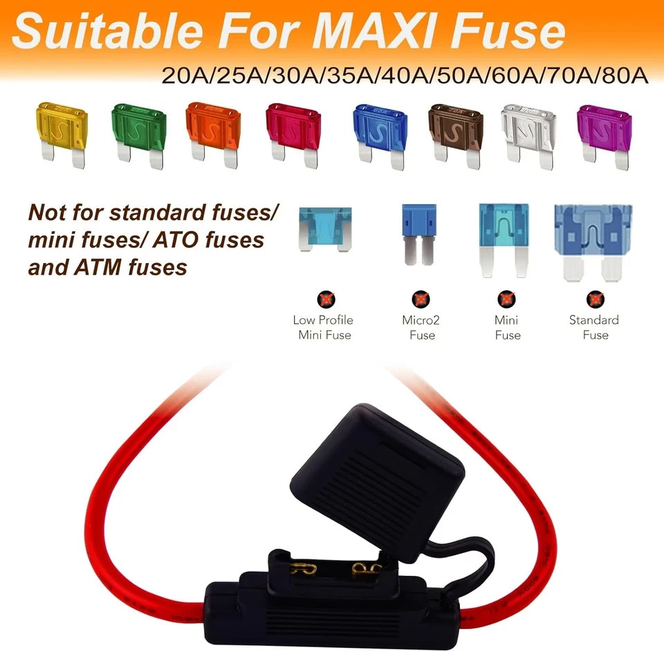 8 AWG Waterproof Heavy-Duty Maxi Inline Fuse Holder with 80A Maxi Fuse for Car