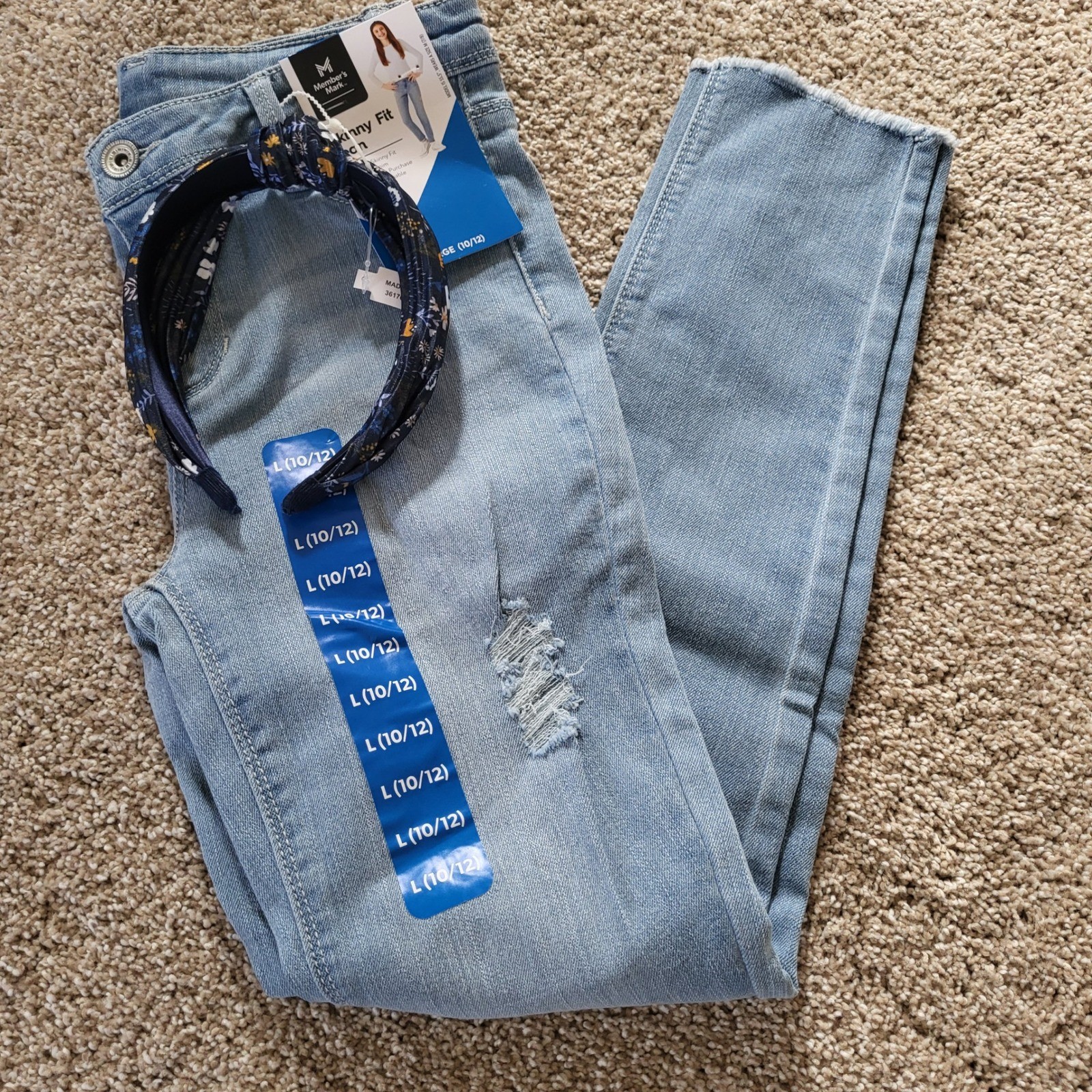 Members Mark Girls Large 10 12 NWT Skinny Fit Jean Mid Rise Stretch Denim Blue