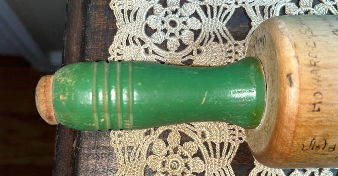 Vtg 1940 s Wooden Rolling Pin Farmhouse Cottage Green Handles 17.5 Lx7.5 C