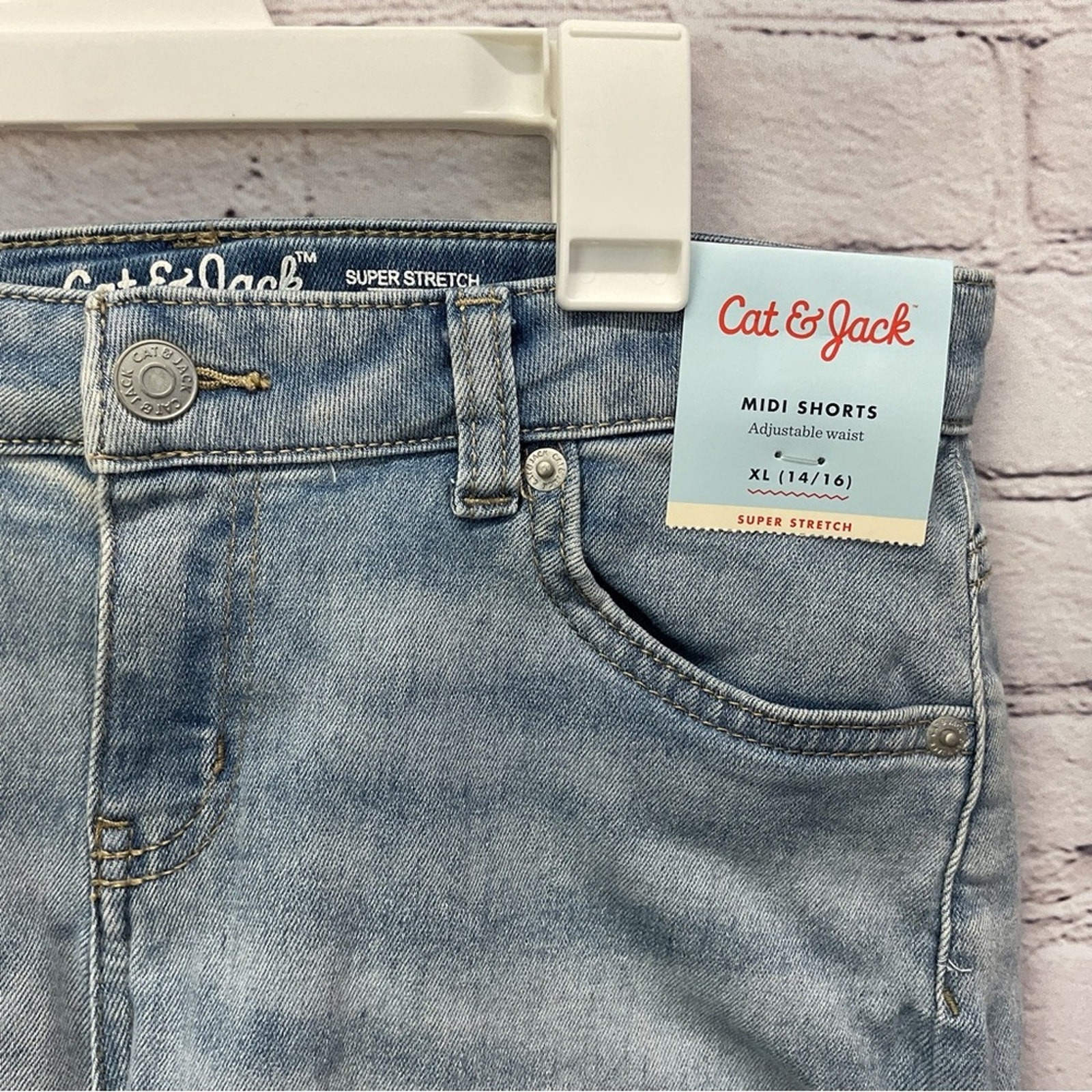 как выглядит Cat Jack Jean Shorts Girls Size XL 14/16 Midi Super Stretch Fraying Beachy фото