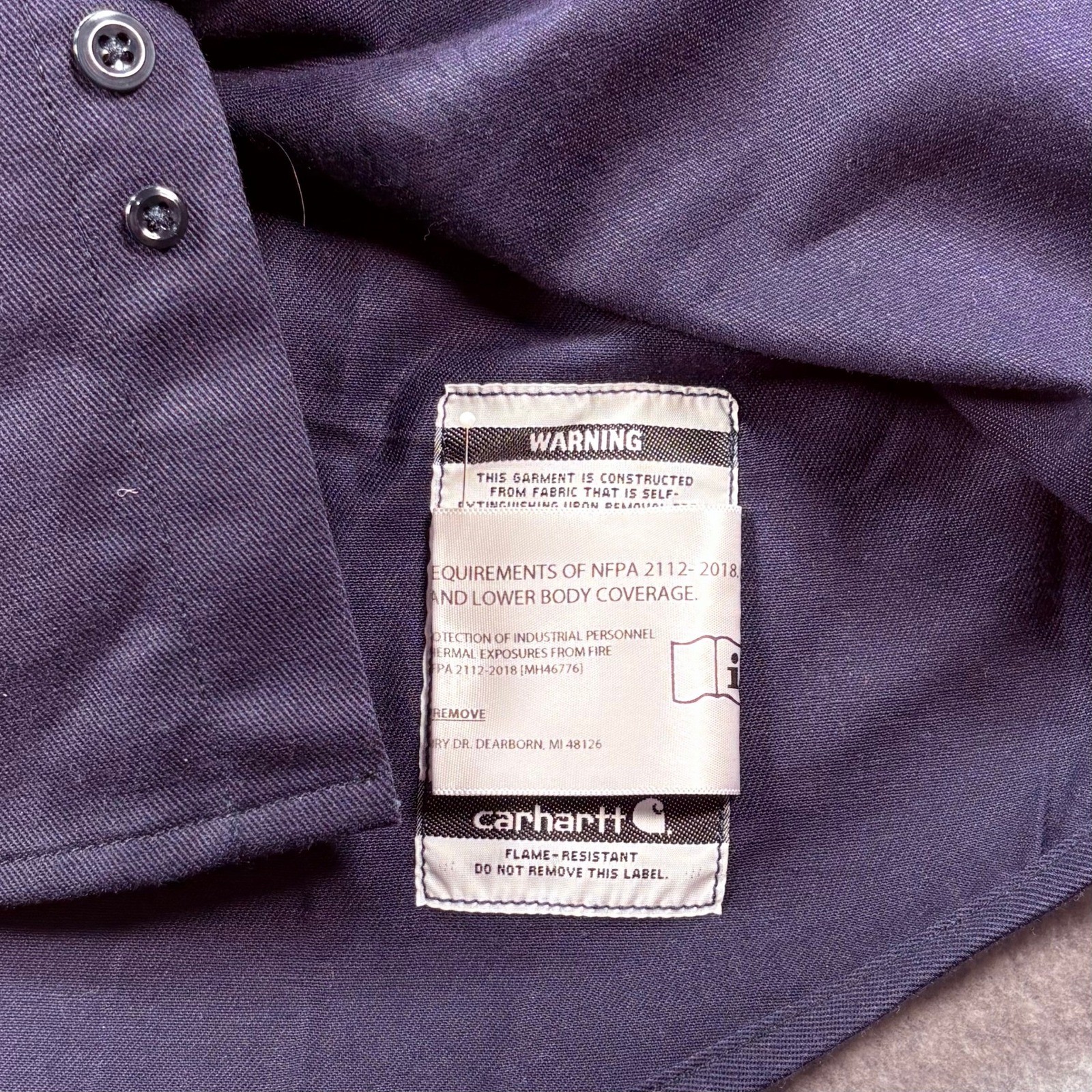 Carhartt FR Mens Large Flame Resistant Work Shirt CAT 2 TW0160-FRM DNY Navy Blue