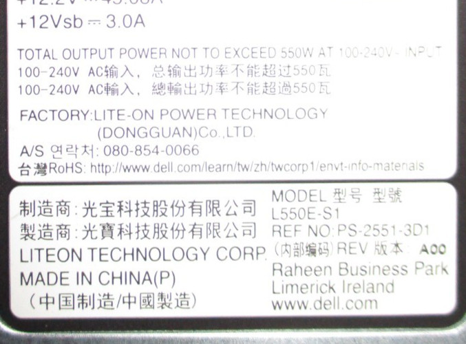 как выглядит Dell PowerEdge 80 Plus Platinum 550W Power Supply L550E-S1 NCNFF / 0NCNFF фото
