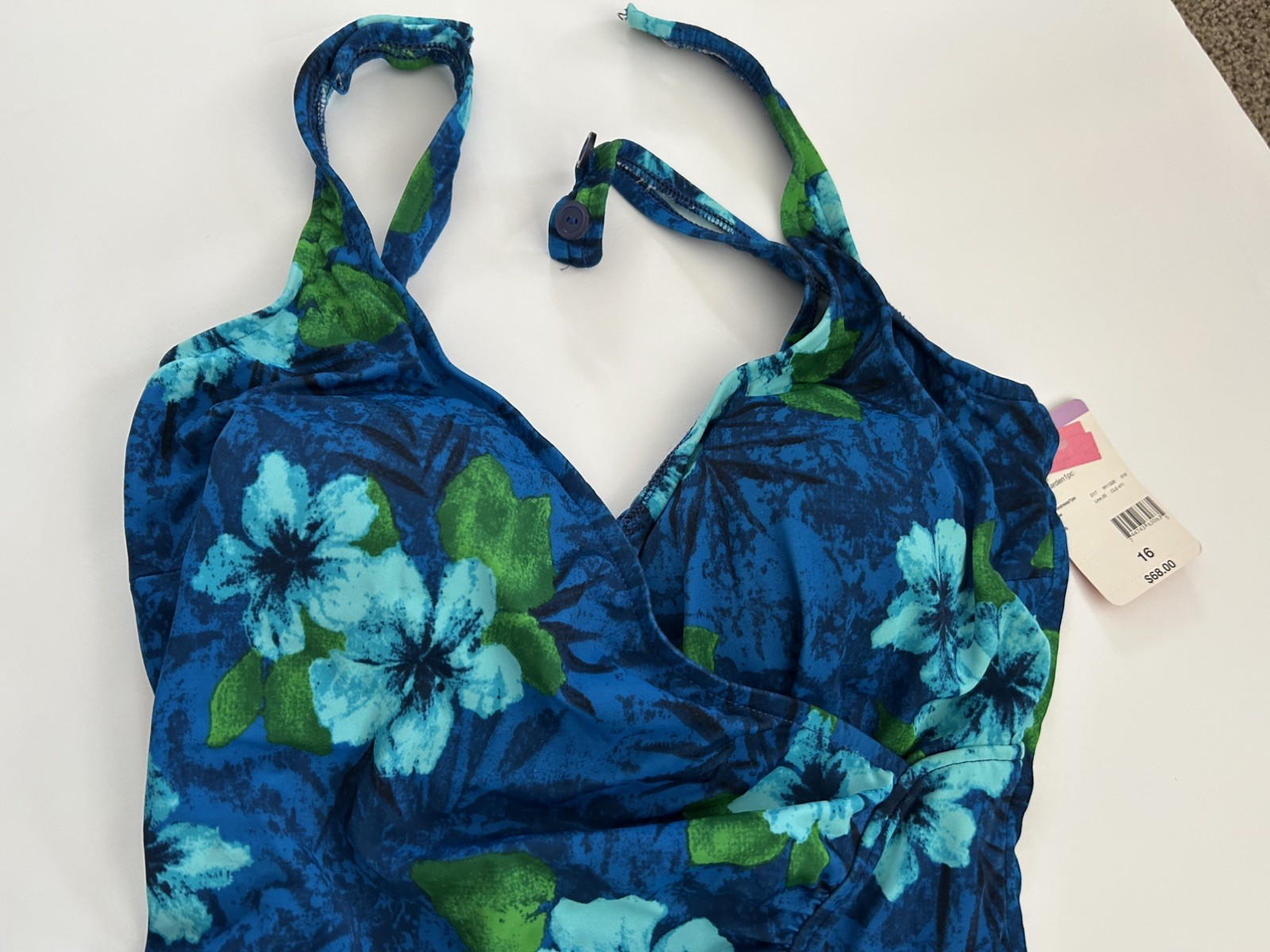 Womens New One Piece Bathing Suit Size 16, Shades of Blue Green