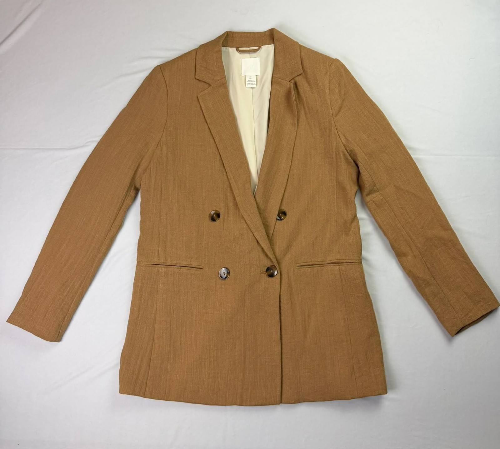 H M Women's Camel Double-Breasted Blazer Jacket