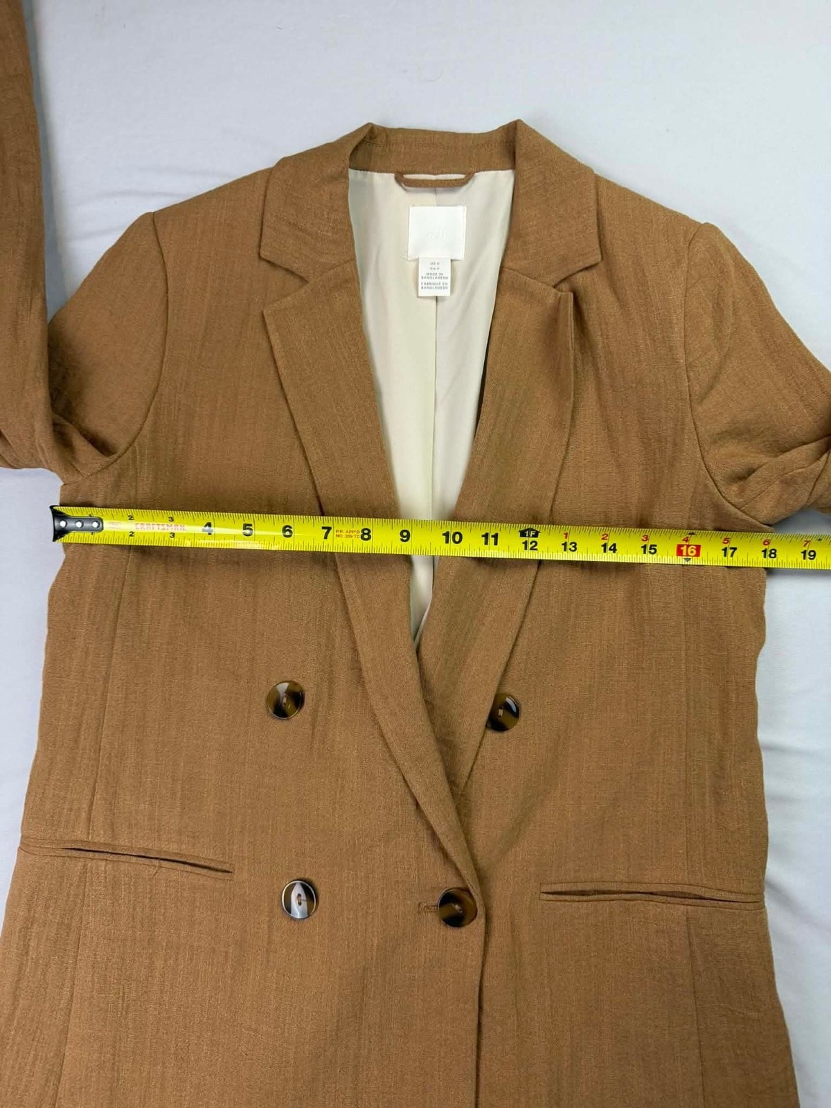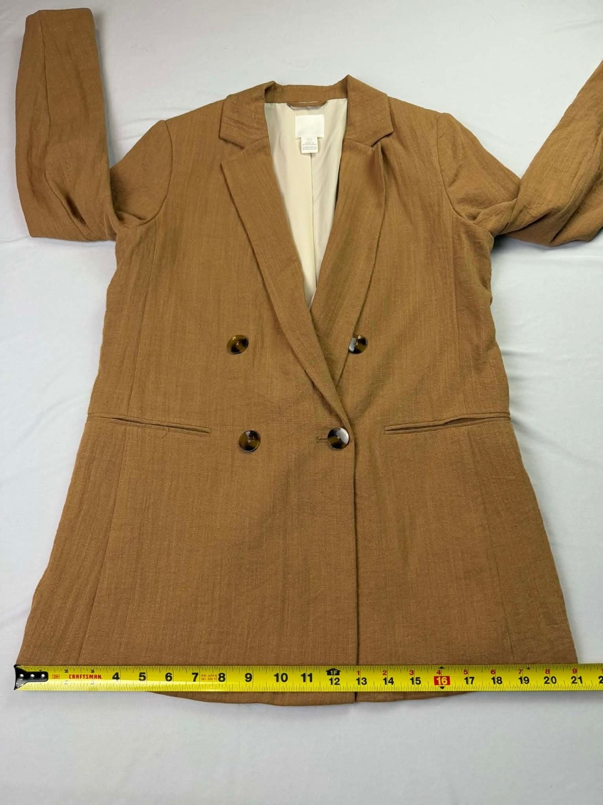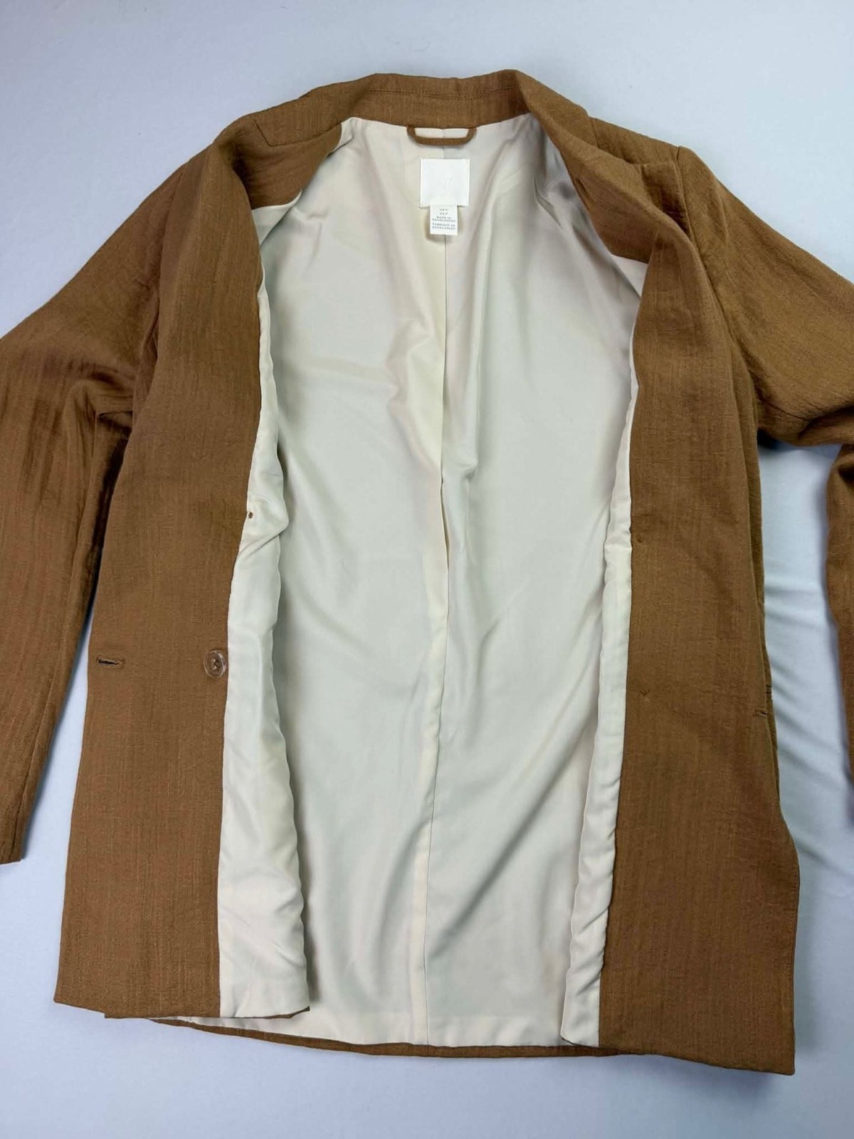 как выглядит H M Womens Camel Double-Breasted Blazer Jacket фото