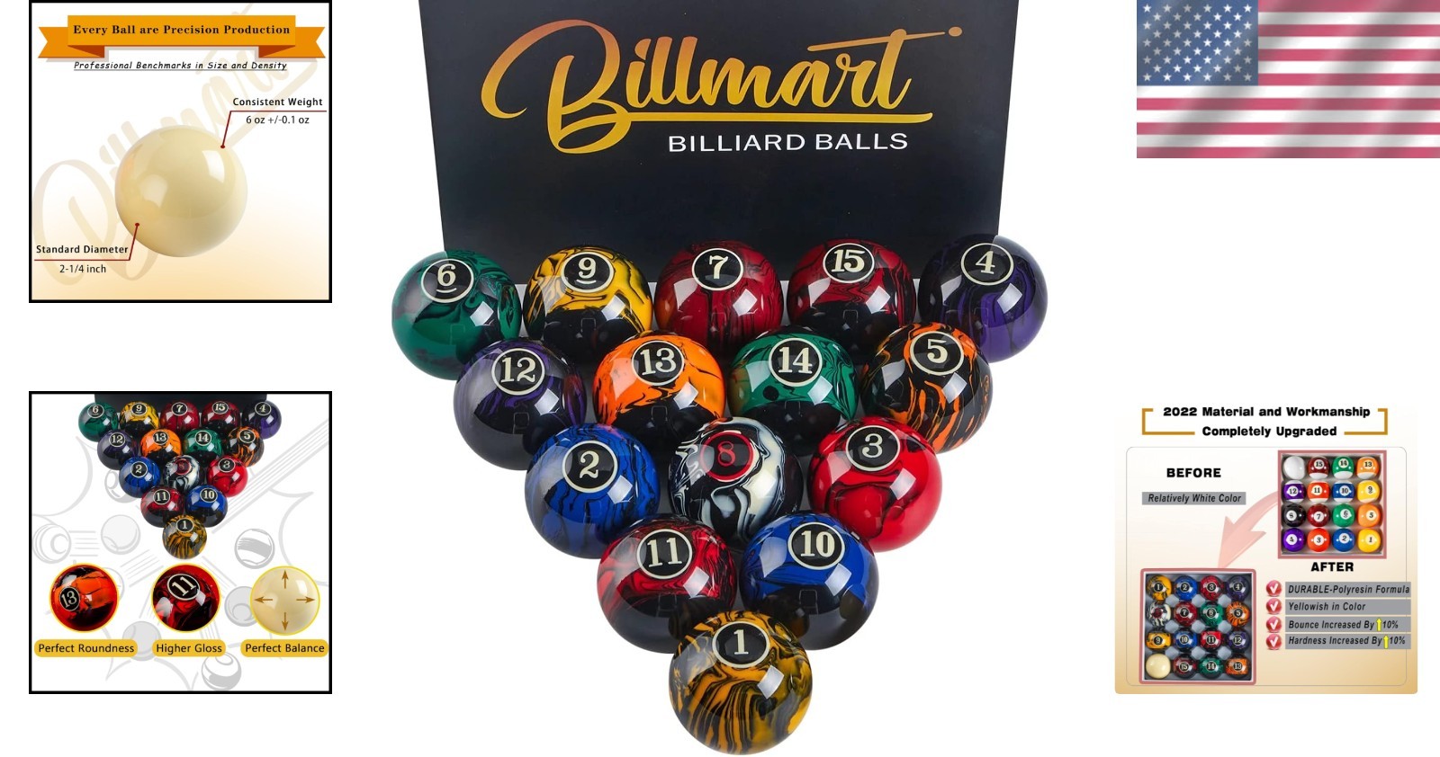 2-1/4 Black Marble Billiard Balls Set 16 High-Quality Pool Balls
