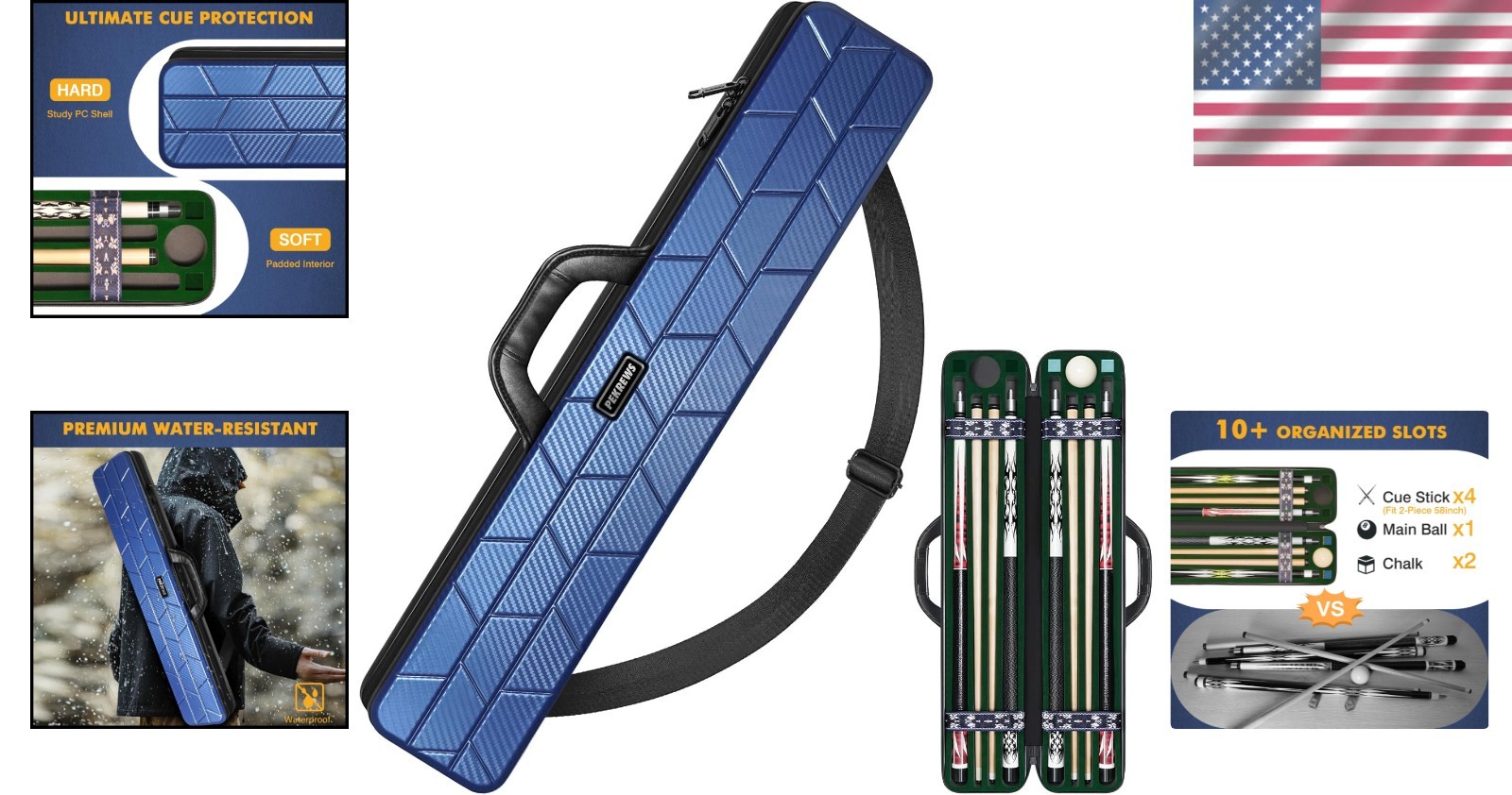 Versatile Heavy-Duty Pool Cue Case - Portable 4x4 Hard Shell with Soft Handle