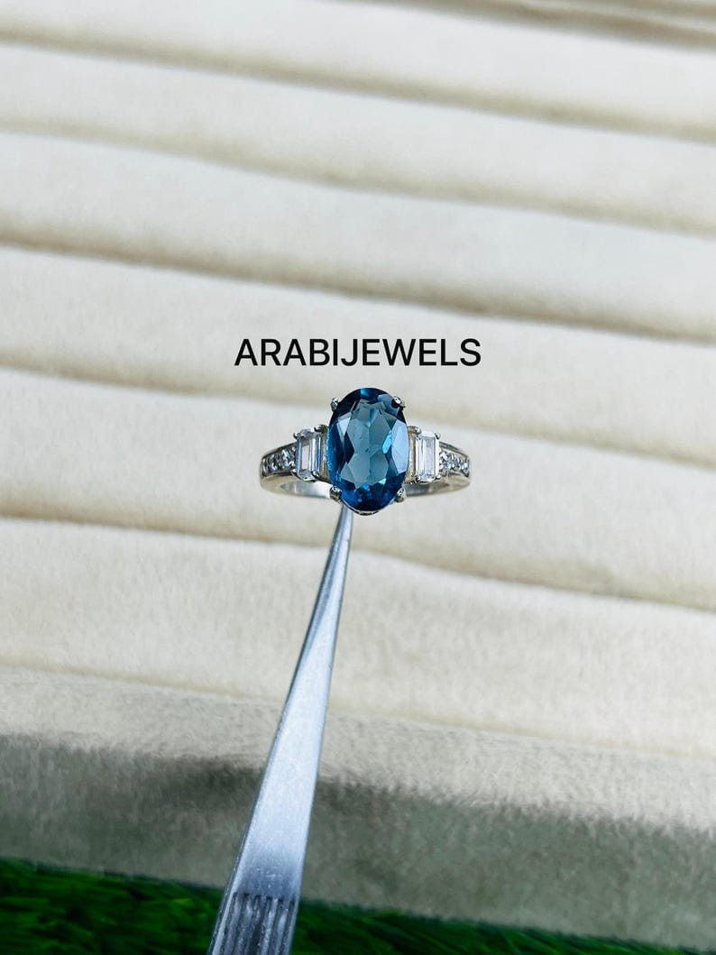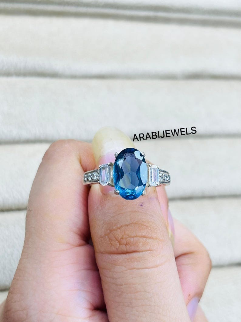 как выглядит Oval Cut Blue Spinel Ring 925 Sterling Silver Gift For Her Ring. фото