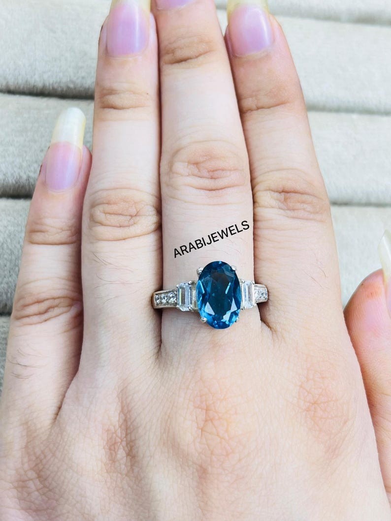 Oval Cut Blue Spinel Ring 925 Sterling Silver Gift For Her Ring.
