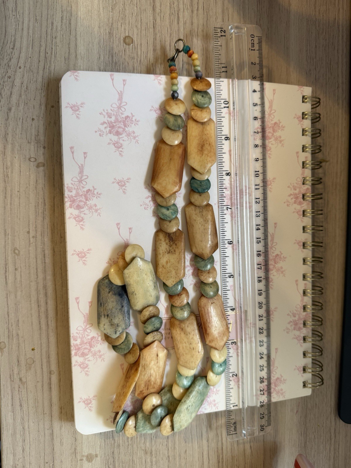как выглядит Long Multicolor Tan And Turquoise Flat Beaded Statement Necklace Boho Chic фото