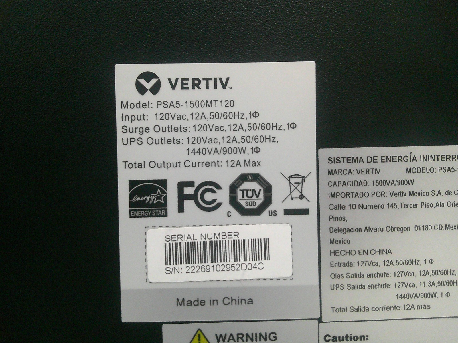 Vertiv Liebert PSA5 UPS 1500VA 900W 120V AVR Tower UPS PSA5-1500MT120 - TESTED