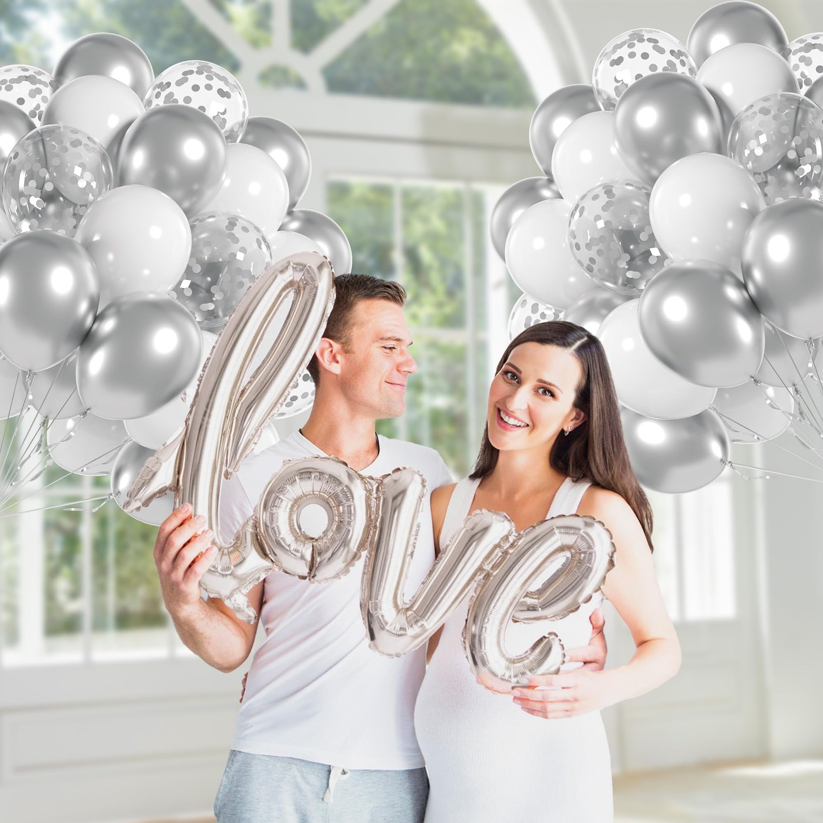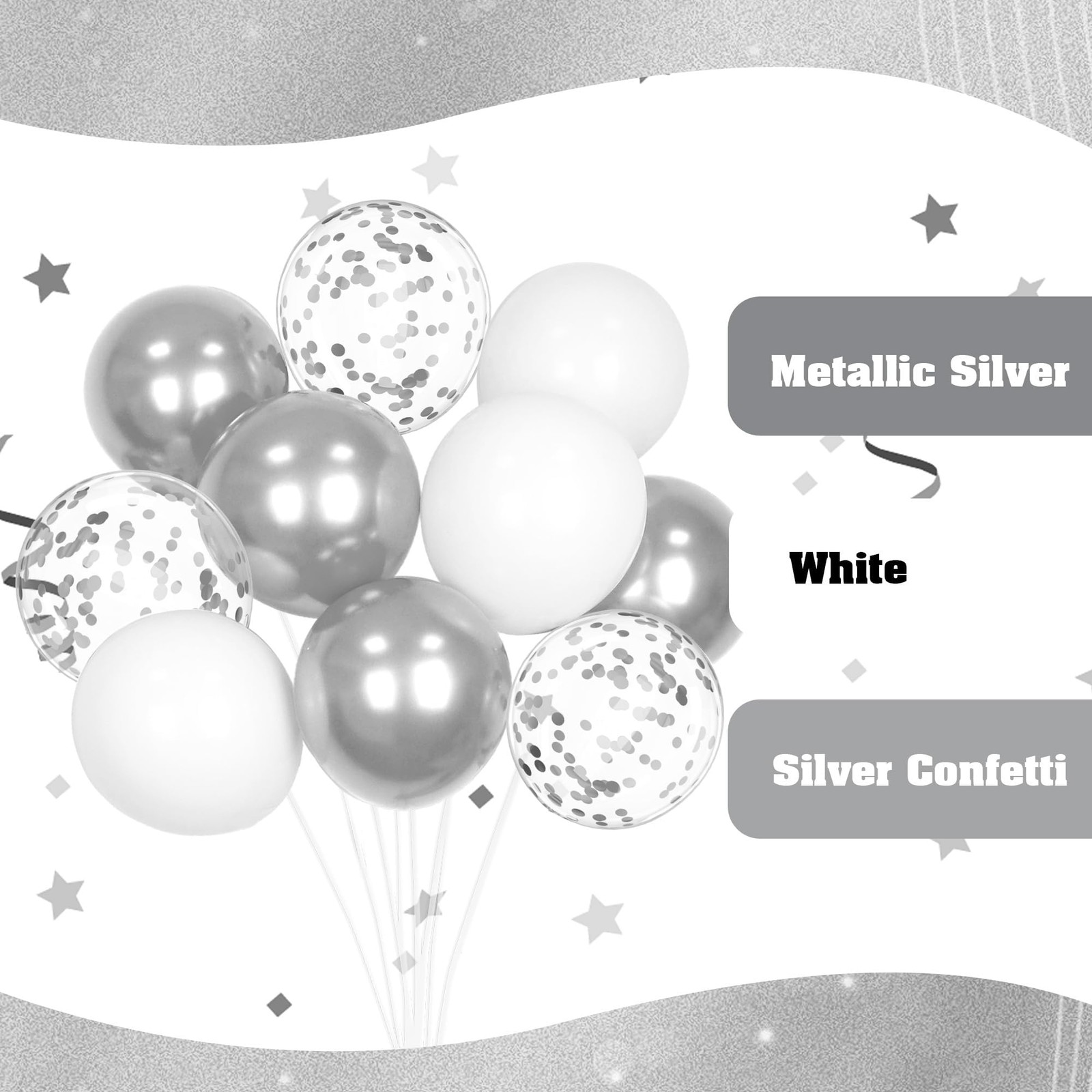 60pcs White and Silver Balloons 12inch, Silver and White Balloons with Metall...