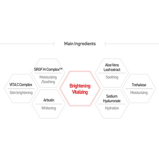 Ingredients: 47% Vita C Complex Ampoule- Vita C Complex, Arbutin, Glycyrrhiza Glabra powder, Sodium Hyaluronate