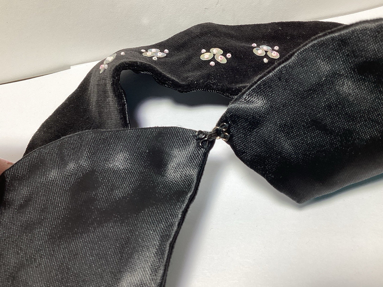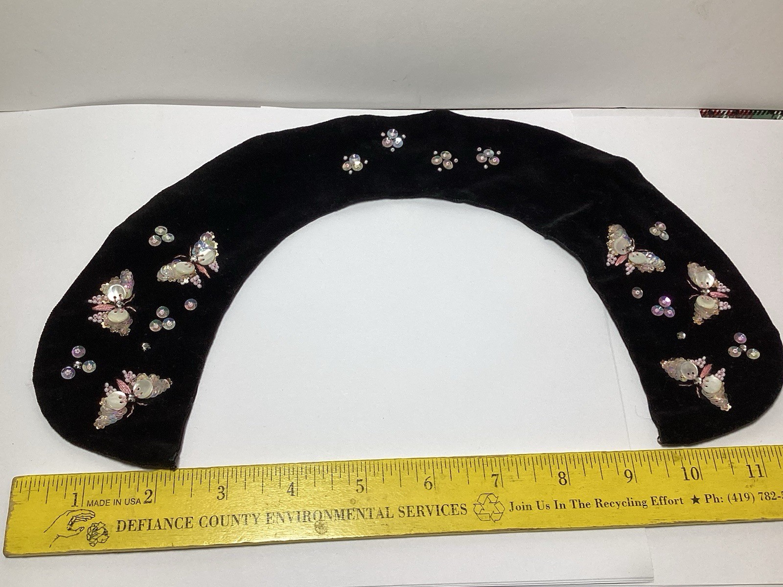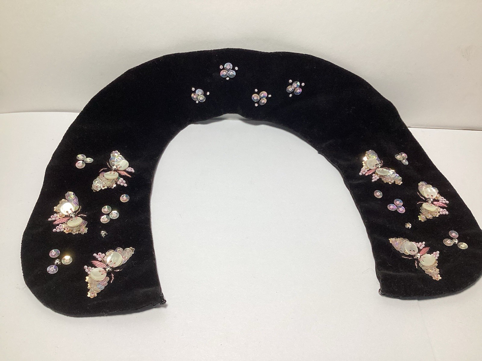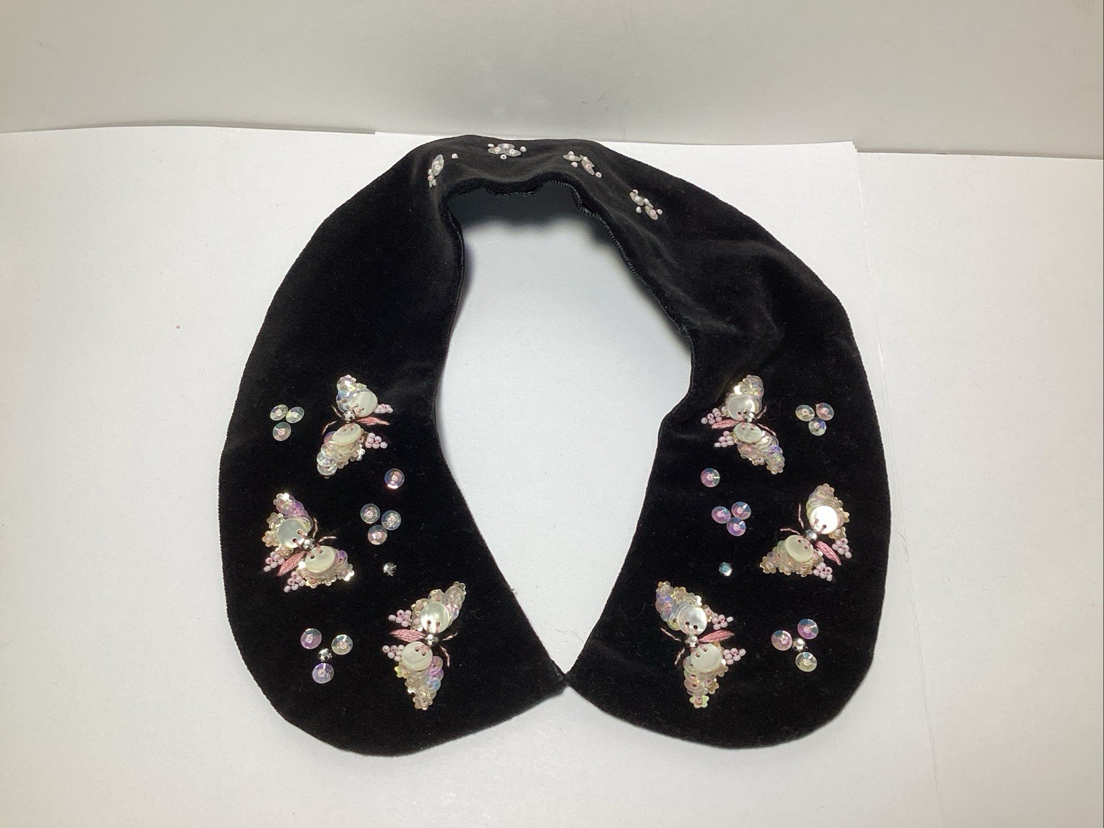 как выглядит VINTAGE HANDMADE BEADED BUTTERFLY BLACK VELVET DETACHABLE COLLAR JAPAN фото