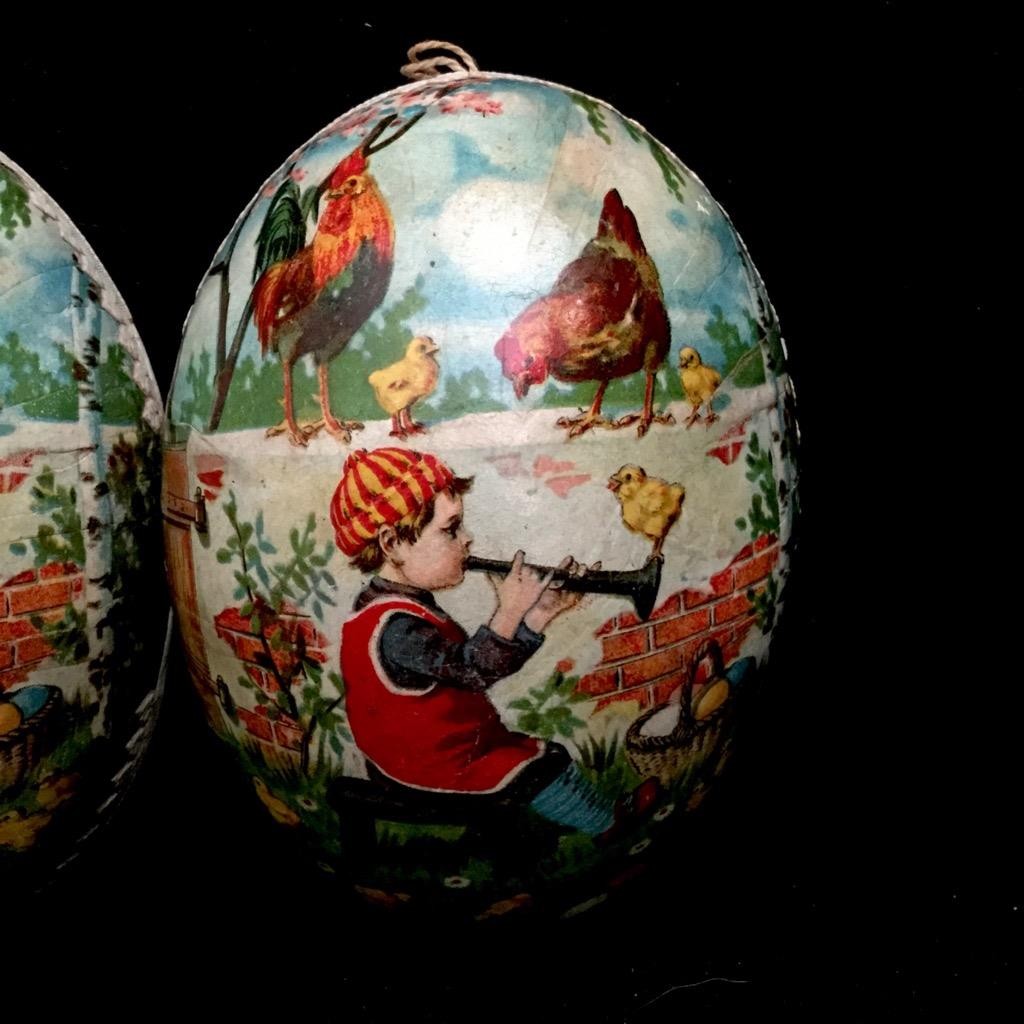 как выглядит 1900s Vintage GERMANY BOY PLAYING HORN chicken EASTER EGG PAPER MACHE CANDY фото