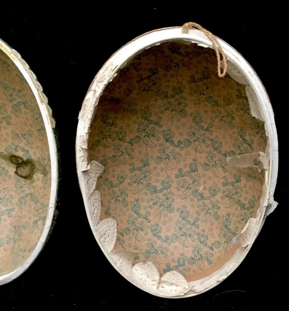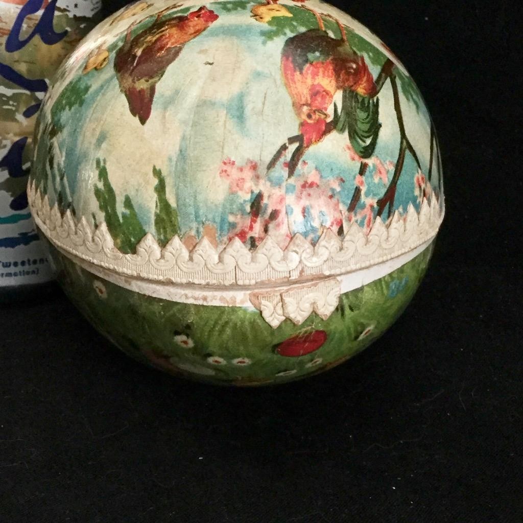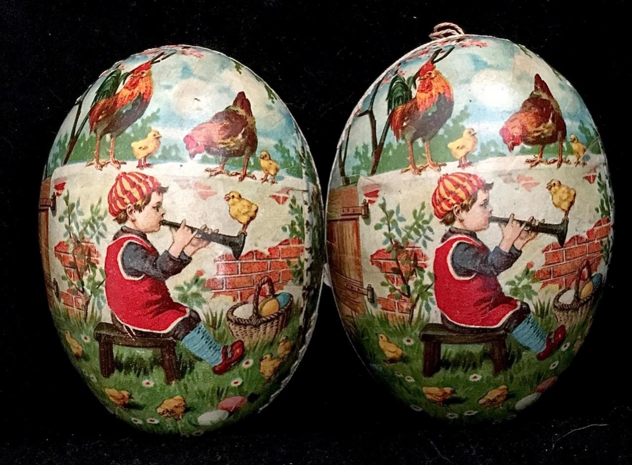 1900s Vintage GERMANY BOY PLAYING HORN chicken EASTER EGG PAPER MACHE CANDY