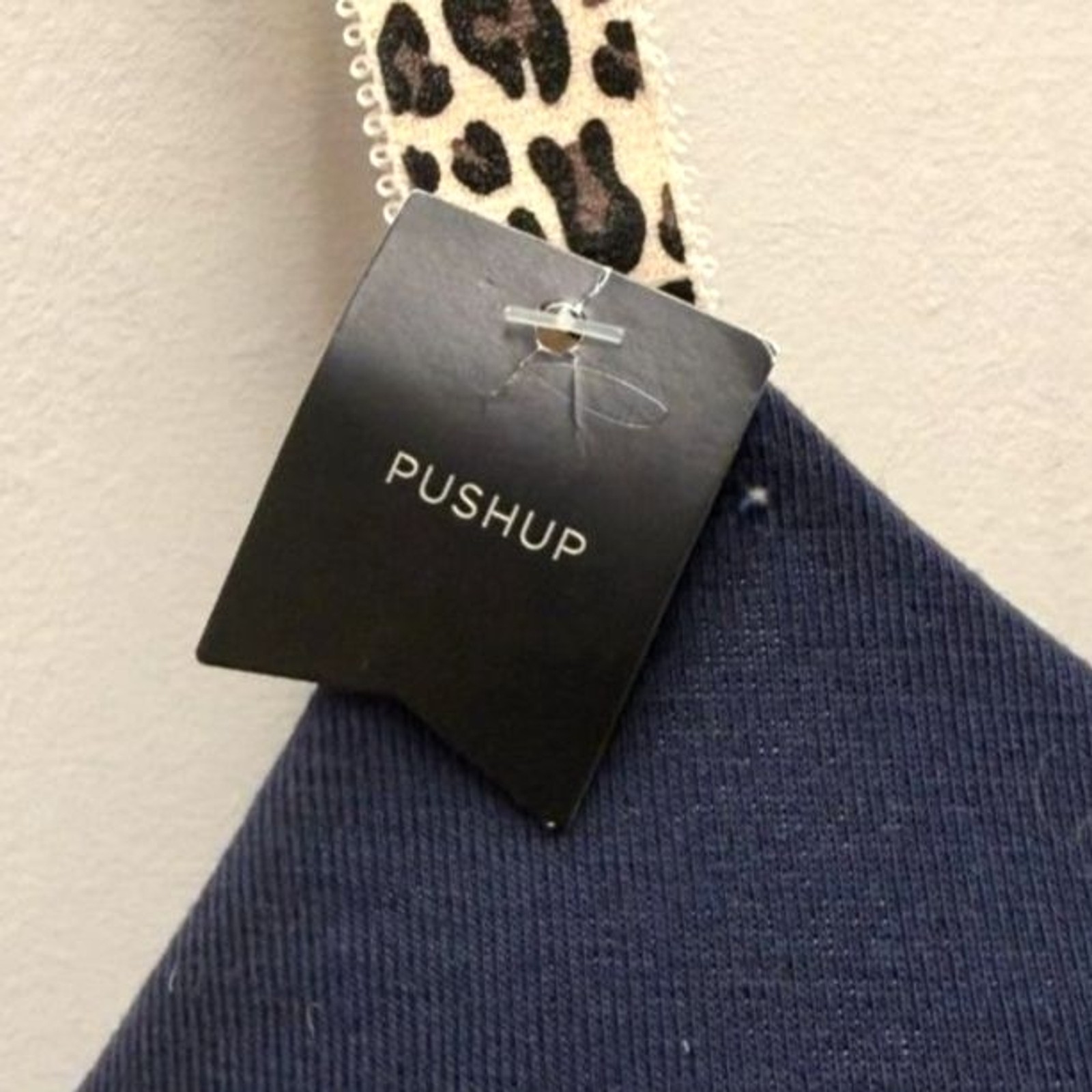 как выглядит Ambrielle Navy Blue Underwire Push-Up Bra 40DD Leopard Print Straps Full Figure фото
