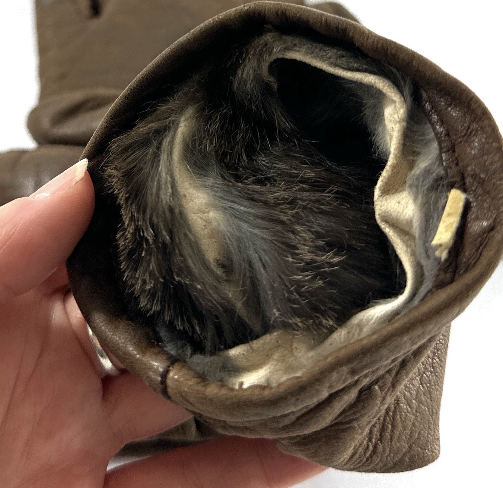 Vintage Women s Brown Leather Gloves Fur Lined Soft Deerskin Winter Size 6.5