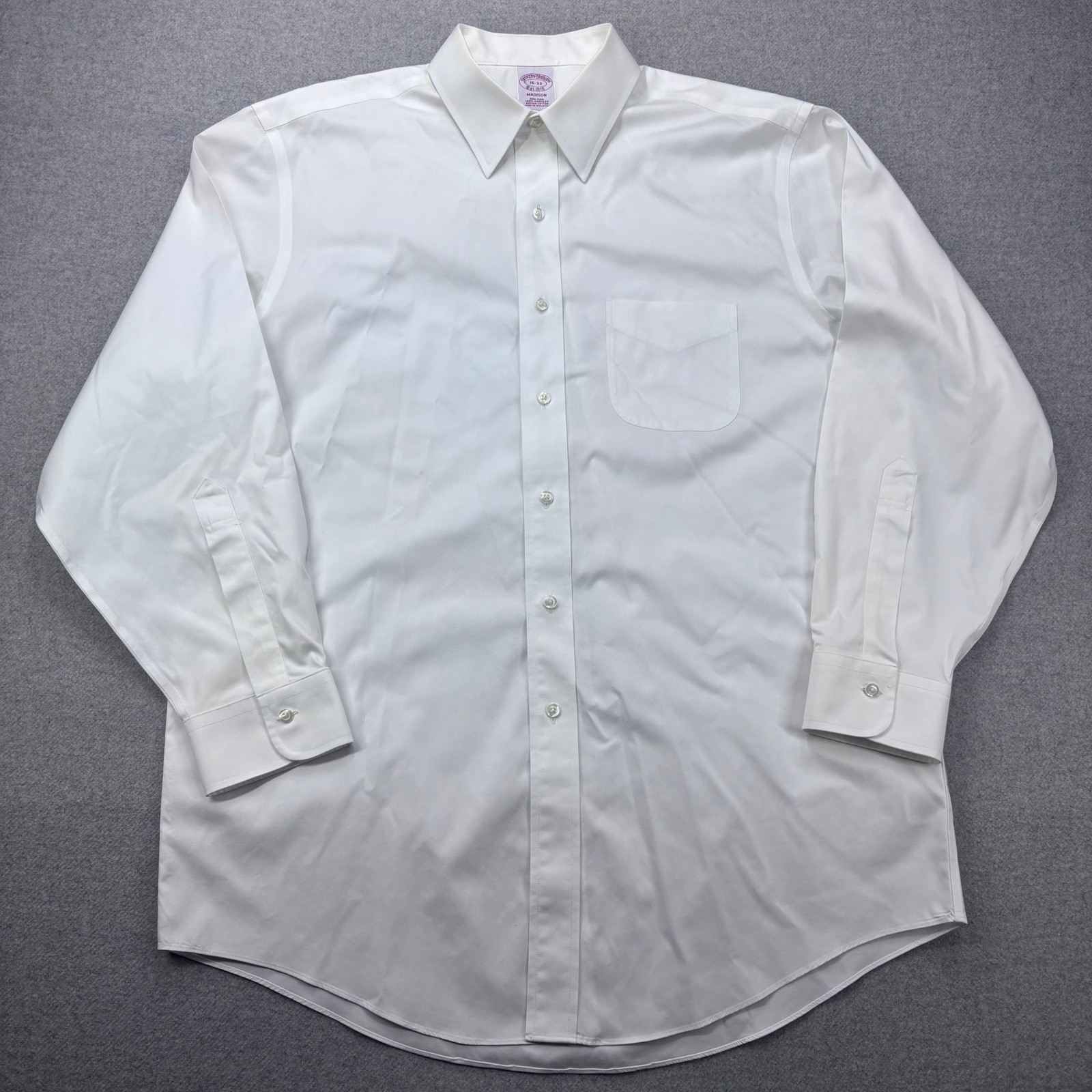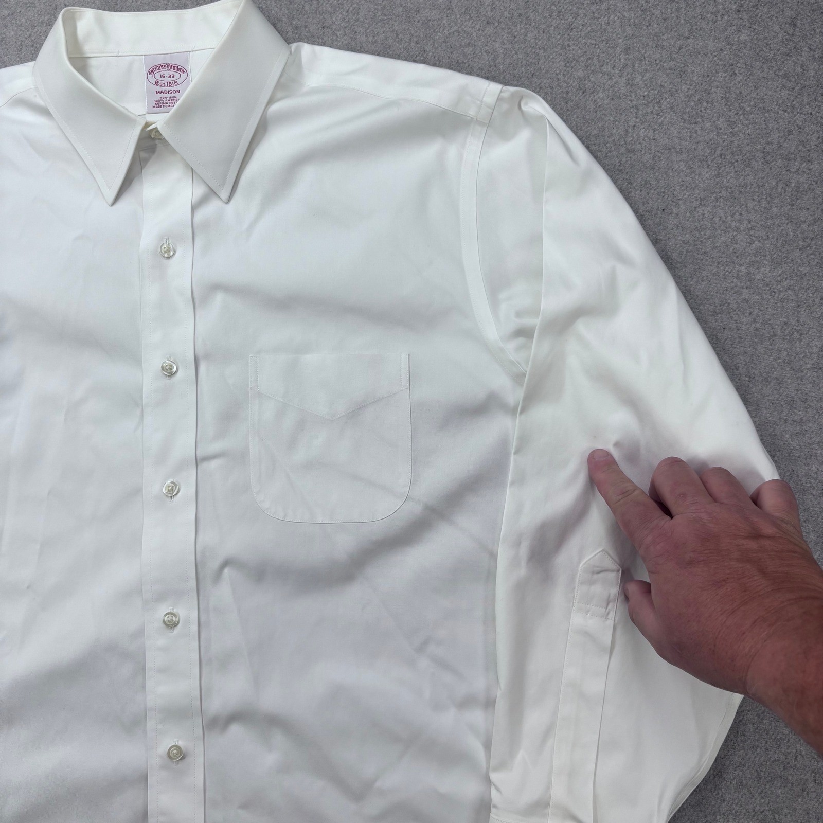 как выглядит Brooks Brothers Dress Shirt Mens 16-33 White Madison Non-Iron Supima TINY FLAW фото