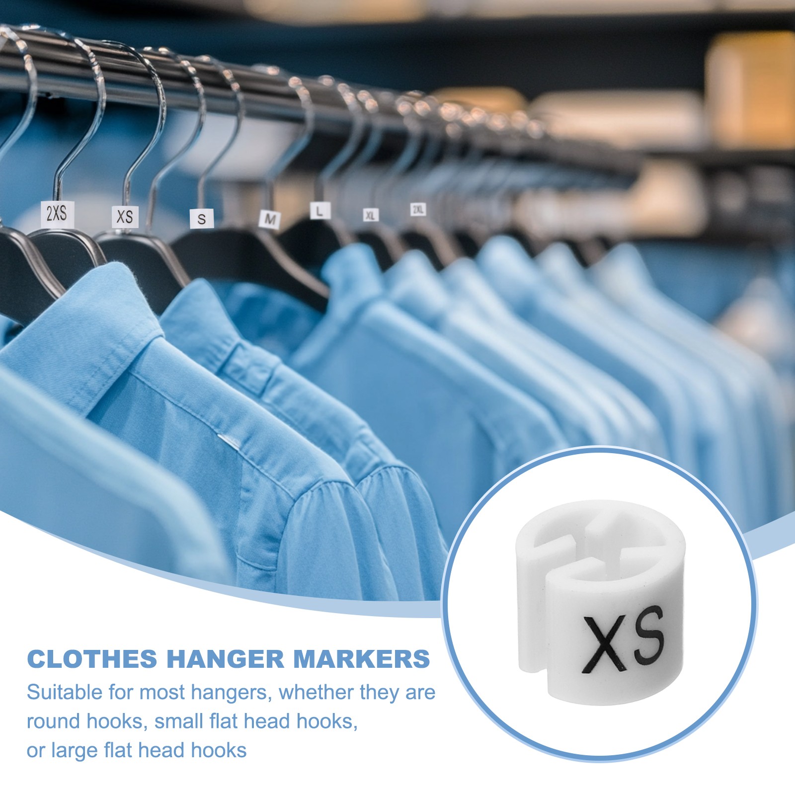 300 Pcs Clothes Hanger Marker XS Fit Rod Garment Size Tag White