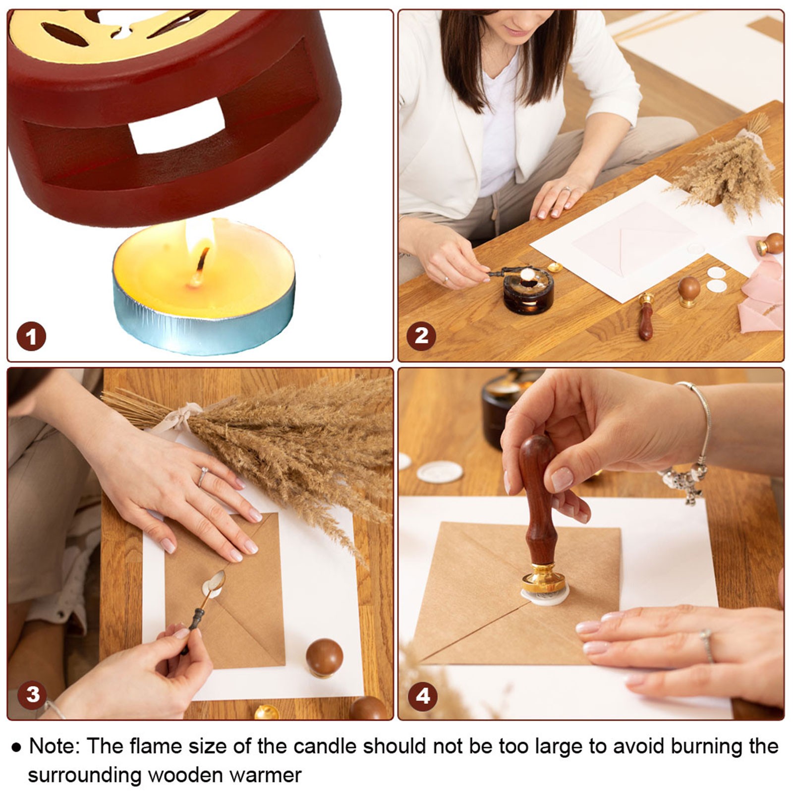 Wax Seal Kit, 2 Set Wax Seal Warmer Melting Spoon Wax Seal Stamp Handle, Black