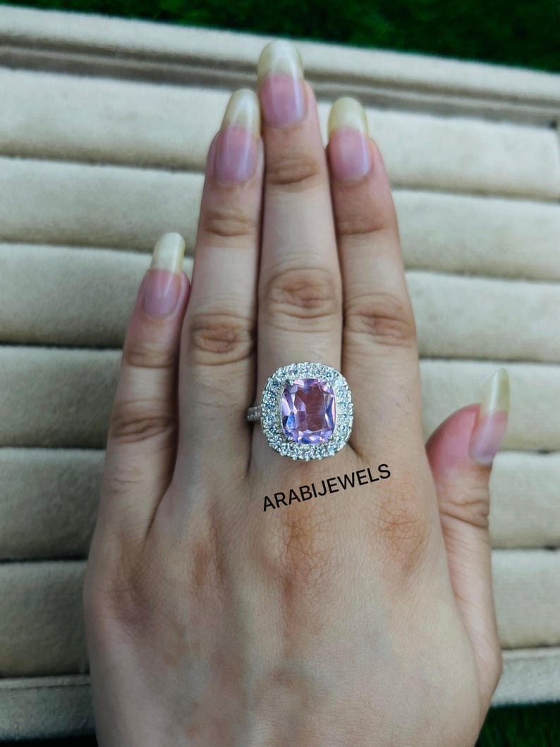 как выглядит Cushion Cut Malaya Garnet Ring 925 sterling Silver Gift For Her Ring. фото