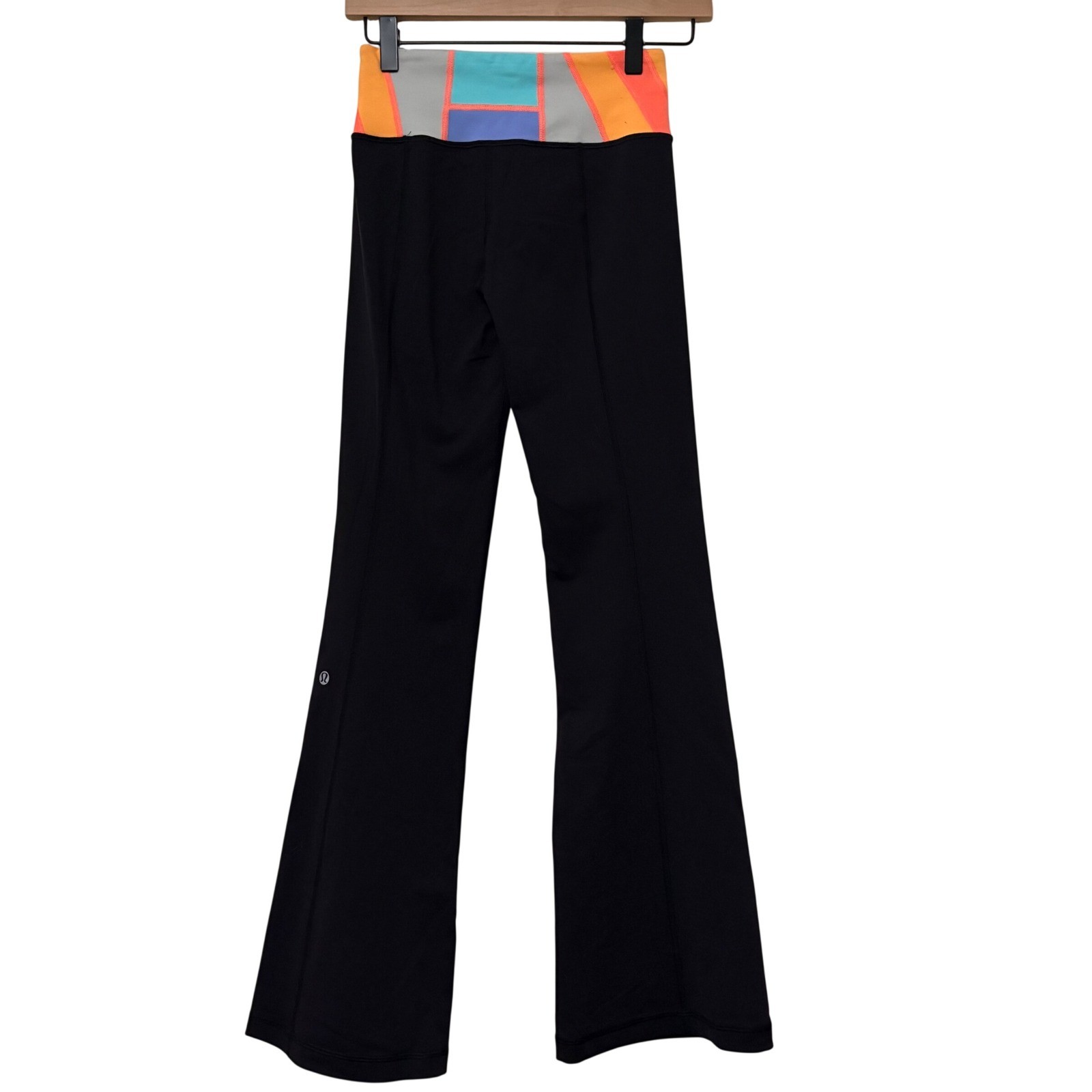 Lululemon Groove Pant Flare Yoga Leggings Black Multicolor Waistband Size 2